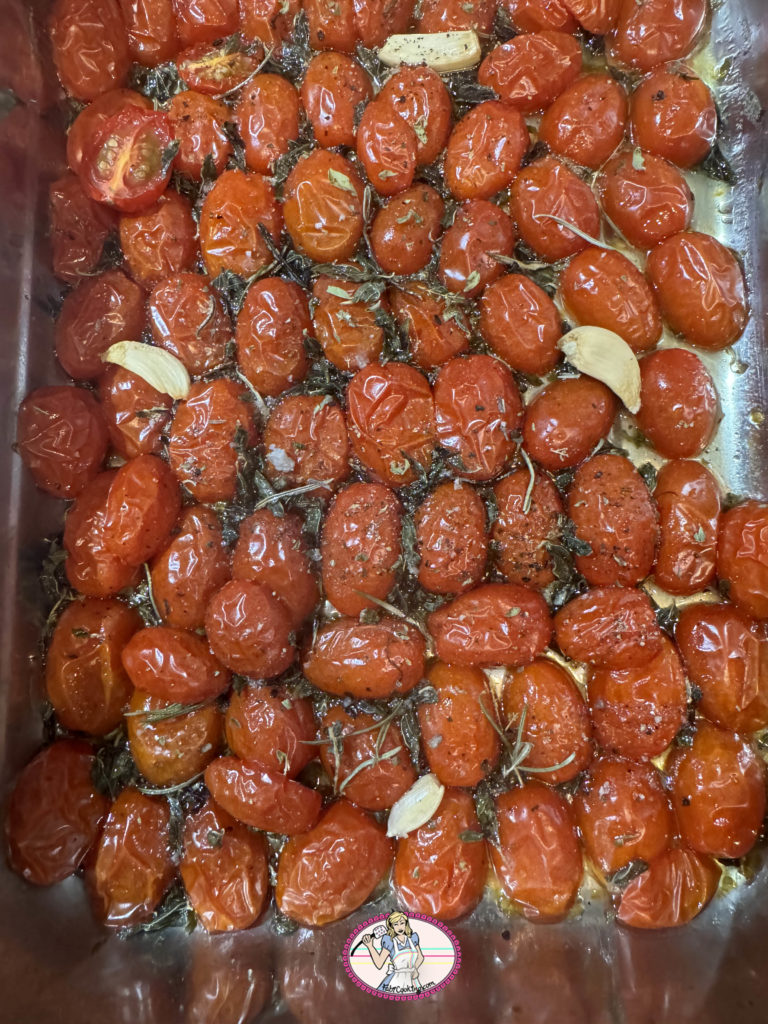 - À la sortie du four, laisser tiédir une bonne dizaine de minutes avant de placer les tomates confites dans le bol d’un mixeur en ôtant le romarin et les tiges de thym. Ajouter le Piment d’Espelette et réserver à température ambiante si la sauce tomate est à déguster le jour même. Je la sers à température ambiante.