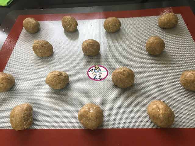 - Former de petites boules de 20 grammes environ et les placer, en les espacant, sur un tapis siliconé posé sur une plaque à pâtisserie