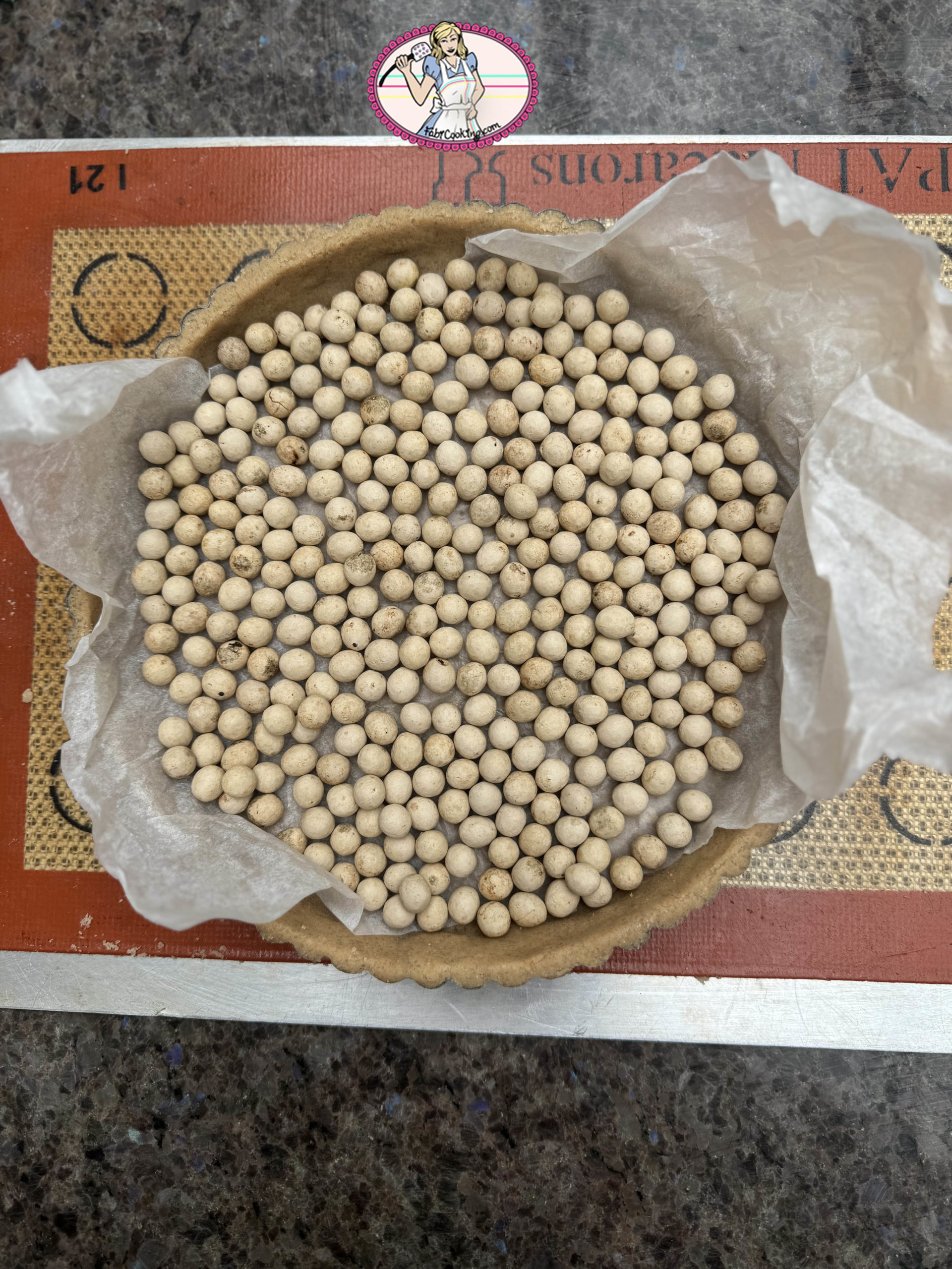 - Ôter les billes et le papier cuisson et replacer 5 bonnes minutes au four.