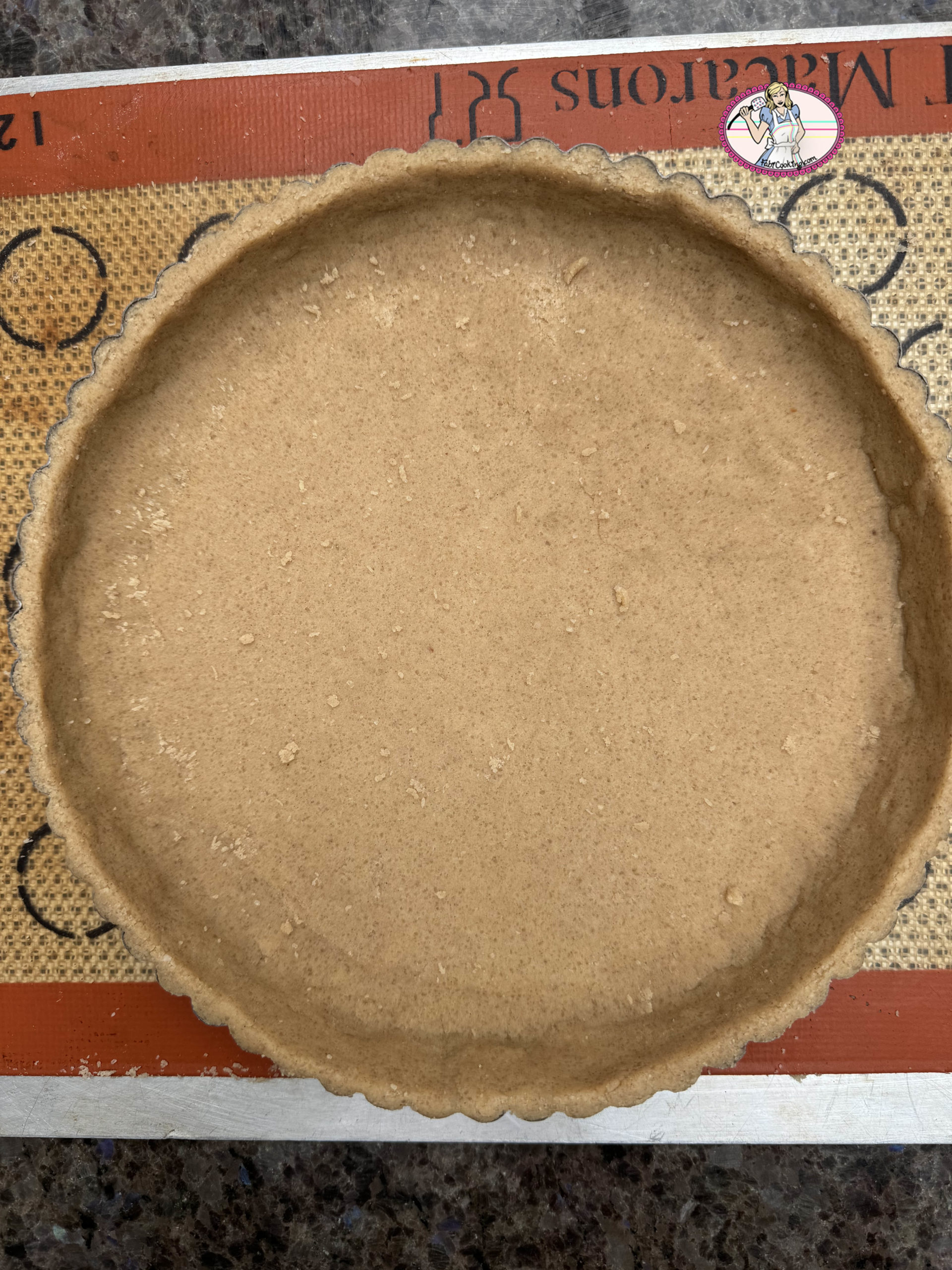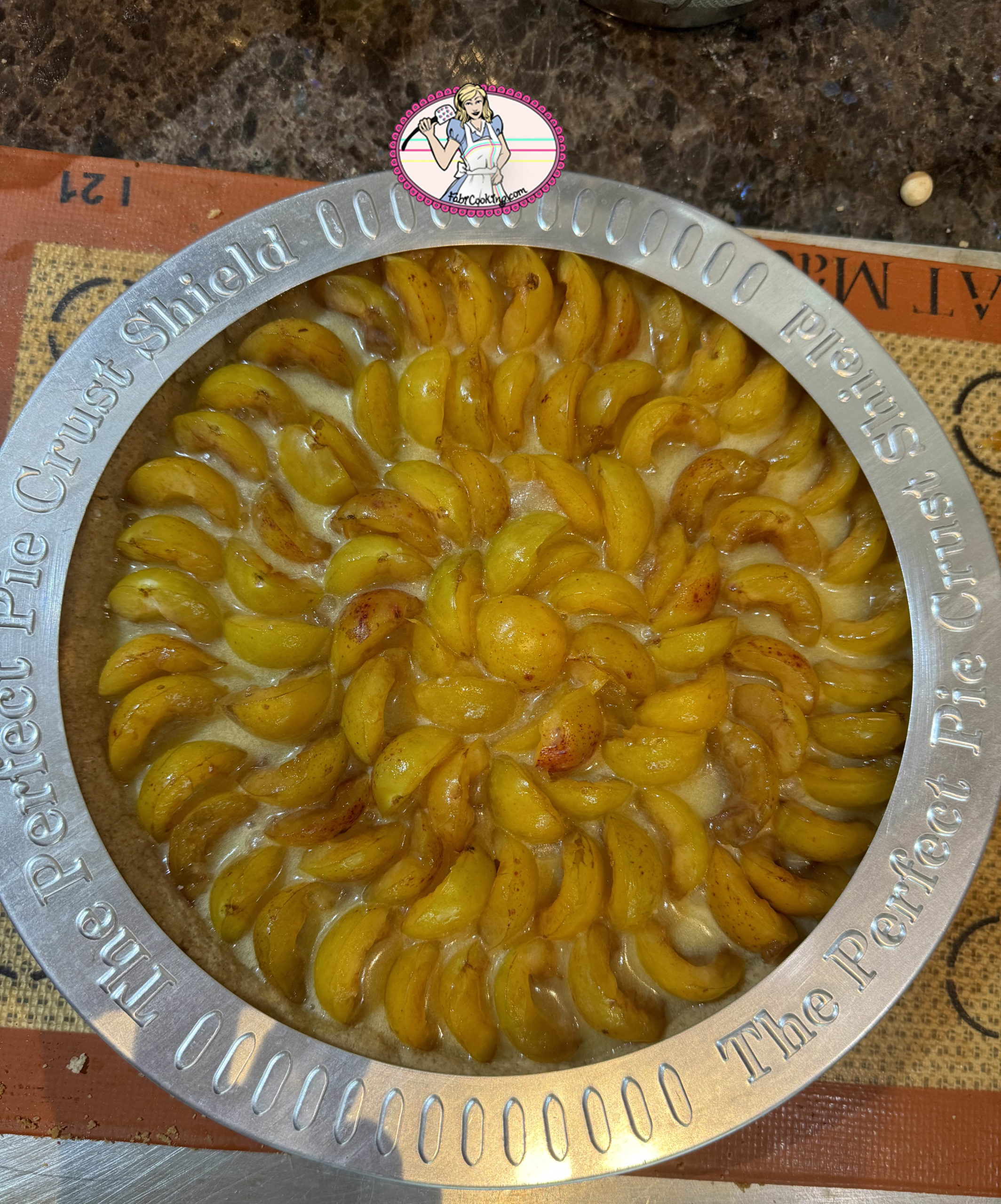 4. Ouvrir le four et contrôler la cuisson: la crème ne doit pas être molle. Si les bords vous semblent un peu cuits, protégez les avec un boudin de papier alu ou avec cette petite merveille ou son équivalent que je vous conseille d’acheter. J’en ai vu passer des très bien chez Tému. Replacer 15 à 20 minutes au four: la tarte est prête quand la crème est stabilisée.
