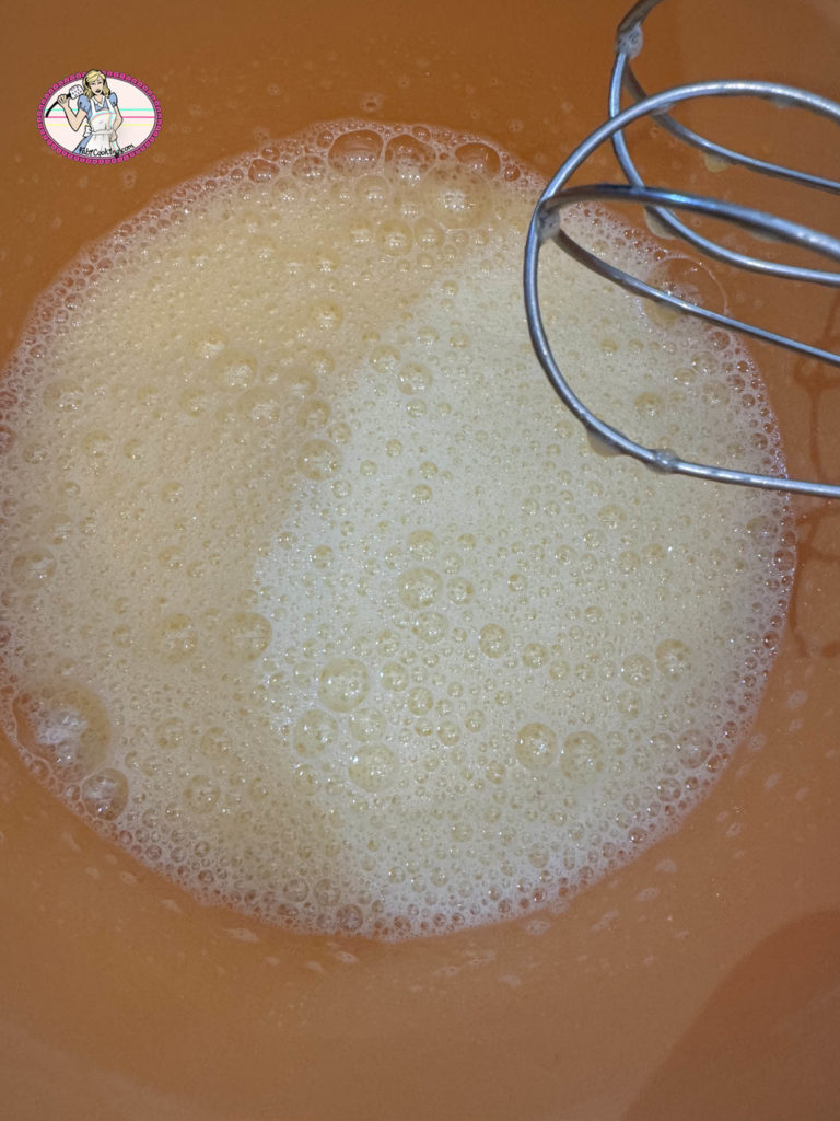 - Fouetter oeufs et sucre semoule jusqu’à ce que le mélange blanchisse