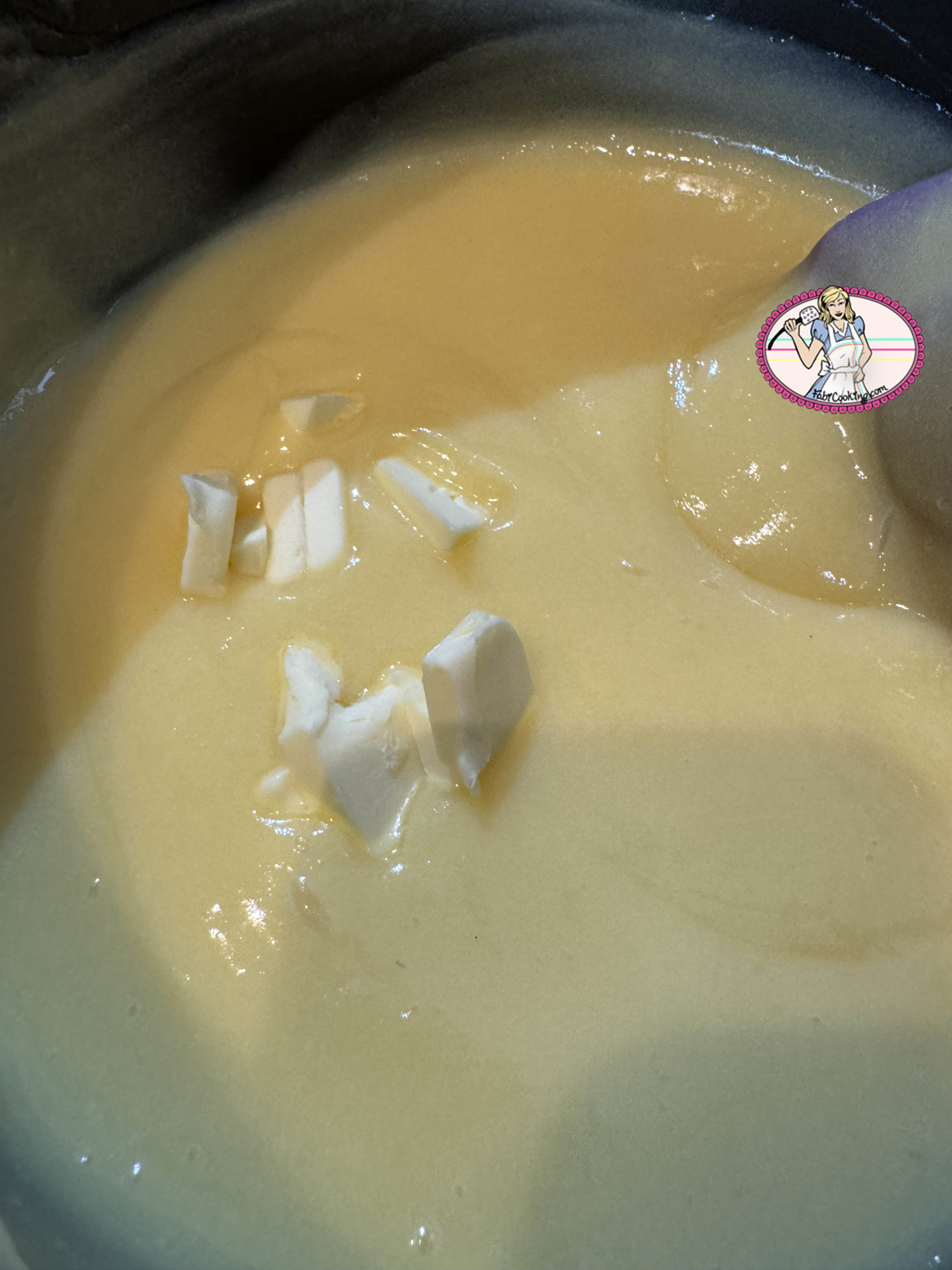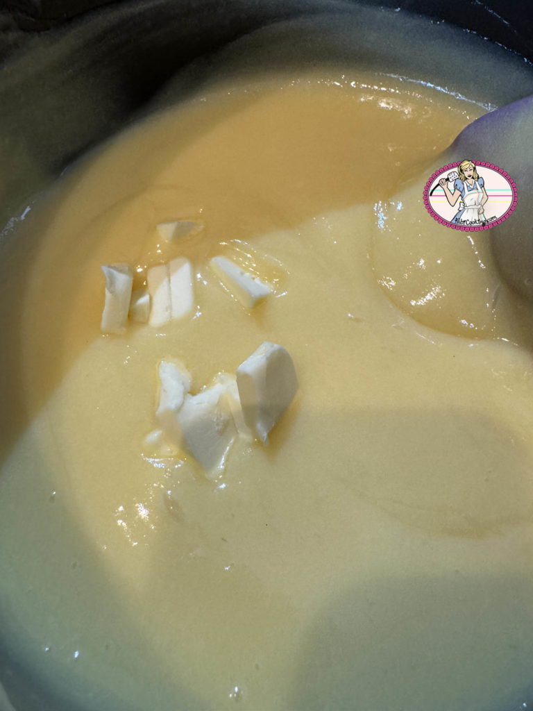 - Attendre 5 minutes puis commencer à incorporer le beurre coupé en petits morceaux en plusieurs fois.