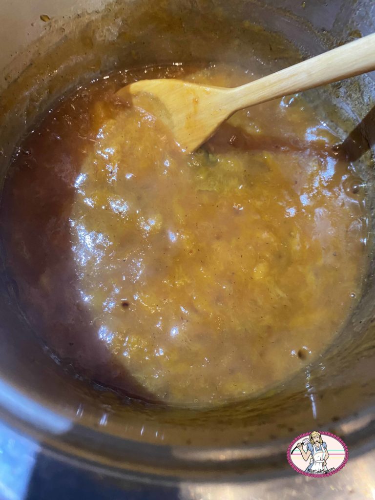 2. Porter à ébullition, puis baisser le feu et laisser mijoter pendant environ 20 minutes, en remuant de temps en temps, jusqu’à ce que les fruits soient tendres et que le jus soit réduit.