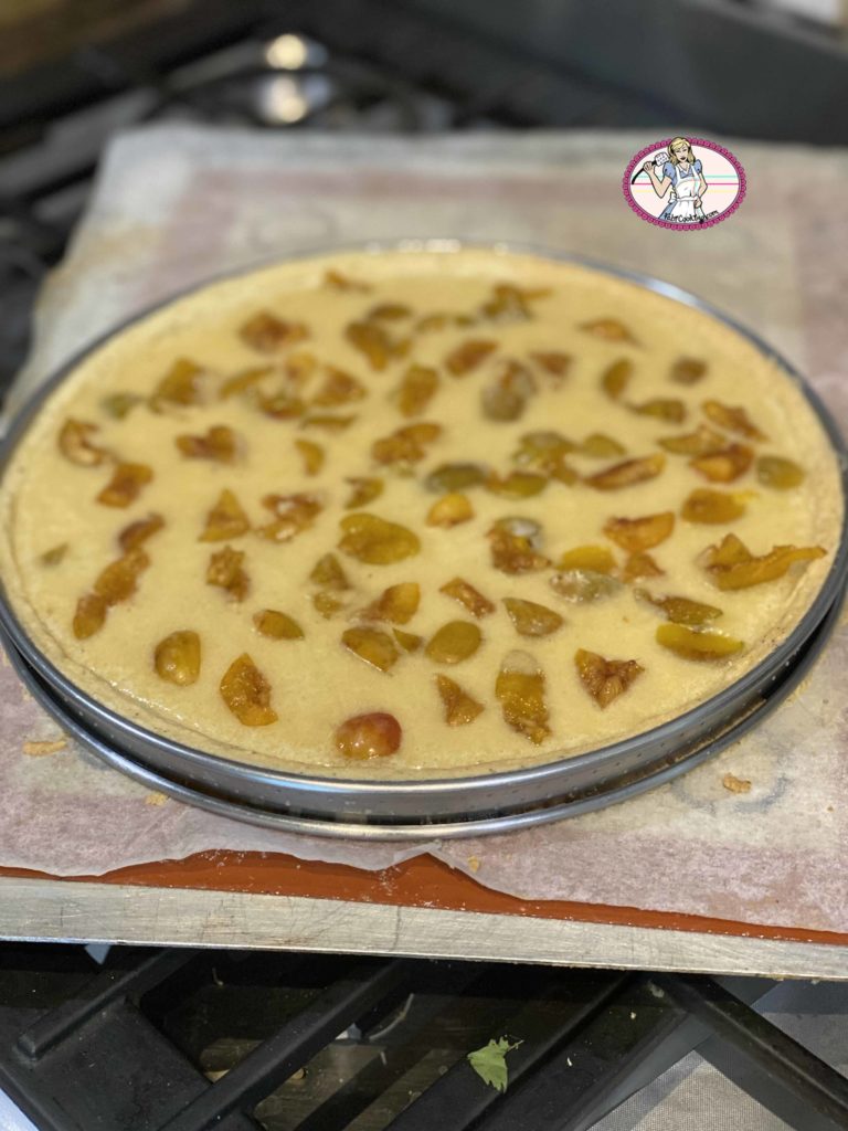 8. Piquer le fond de tarte avant d’enfourner à four préchauffé à 160° pour une cuisson à blanc de 15 mn avant de le garnir de la crème d’amande sur laquelle vous ajouterez +/- 8 mirabelles coupées. Cuisson 15 mn supplémentaires ( le temps de cuisson dépendra de votre four): le dessus de la crème d’amande doit rester souple quand vous le touchez avec le doigt.