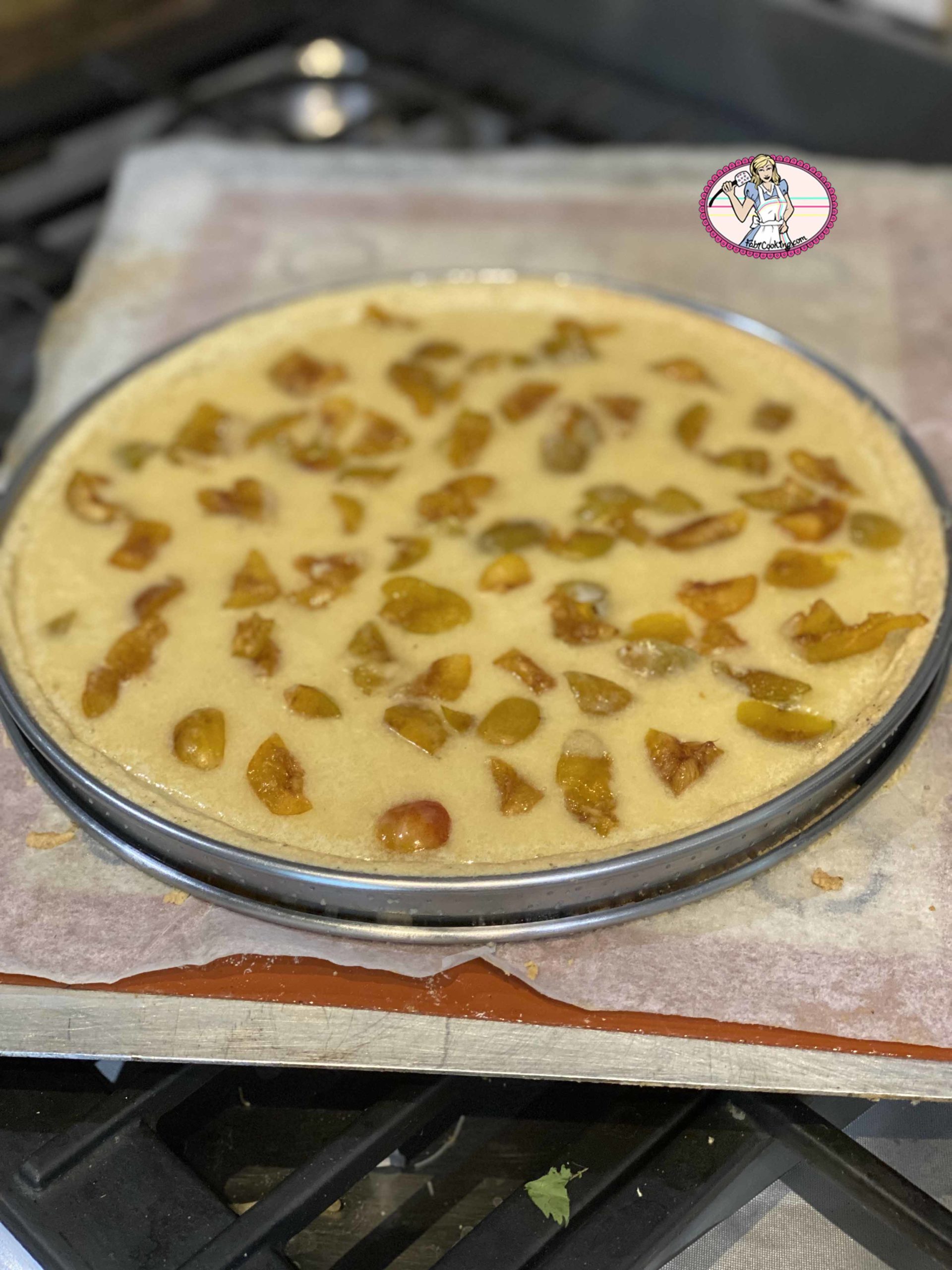 La pâte sablée noisette maison, croustillante et fondante à la fois, accueille une crème d’amande – ou de noisette- crémeuse et une compotée de mirabelles.