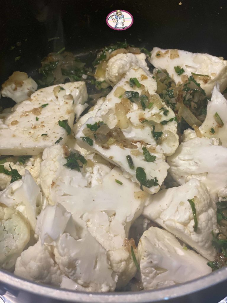 - Débarrasser le chou fleur de ses feuilles vertes qui le protègent. Vous pouvez choisir de couper les bouquets de chou- fleur ou de les tronçonner en tranches plutôt épaisses. J’ai voulu tester cette méthode que j’utilise pour faire griller mon chou-fleur au four ou même pour les frire, mais je préfère la méthode traditionnelle des bouquets pour ce genre de recette. Rincer à l’eau fraiche.