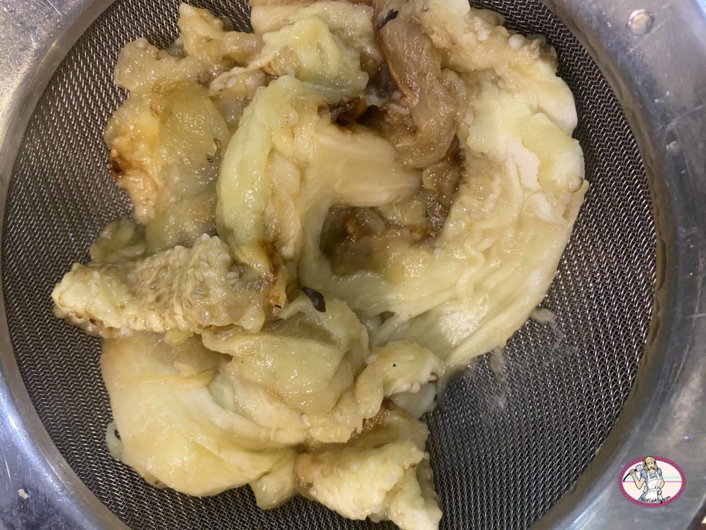 4. Placer la chair de l’aubergine dans une passoire et la laisser s’égoutter