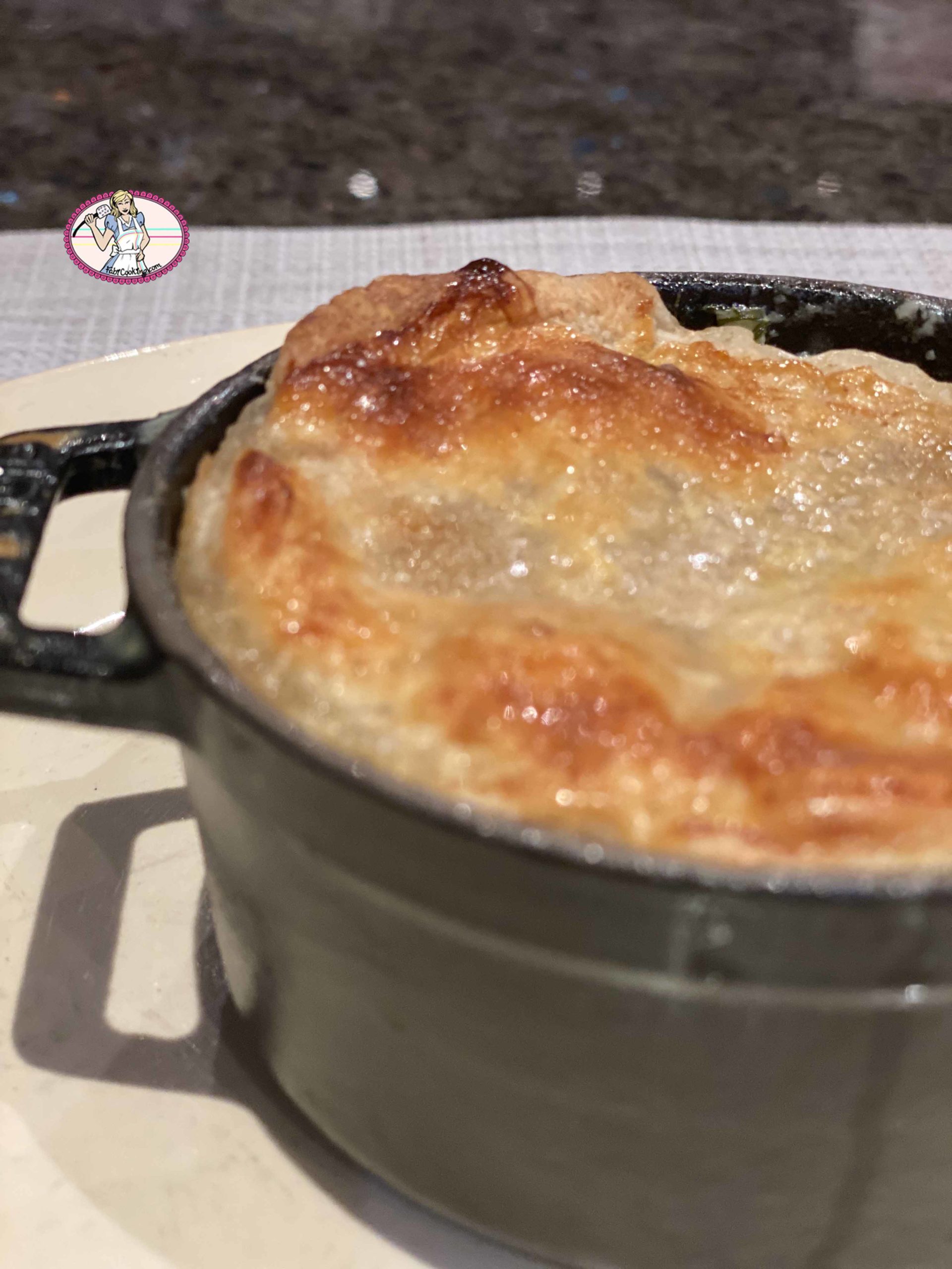 Les miennes se sont un peu battues entre elles pour décrocher la médaille d’or ou d’argent puisque j’en ai en fonte, de la marque Staub, et en céramique de chez Le Creuset. Du coup, j’ai voulu vérifier si les cuissons seraient différentes mais n’ai noté aucune réelle différence: normal je pense, car la cuisson est quasi terminée avant d’enfourner.