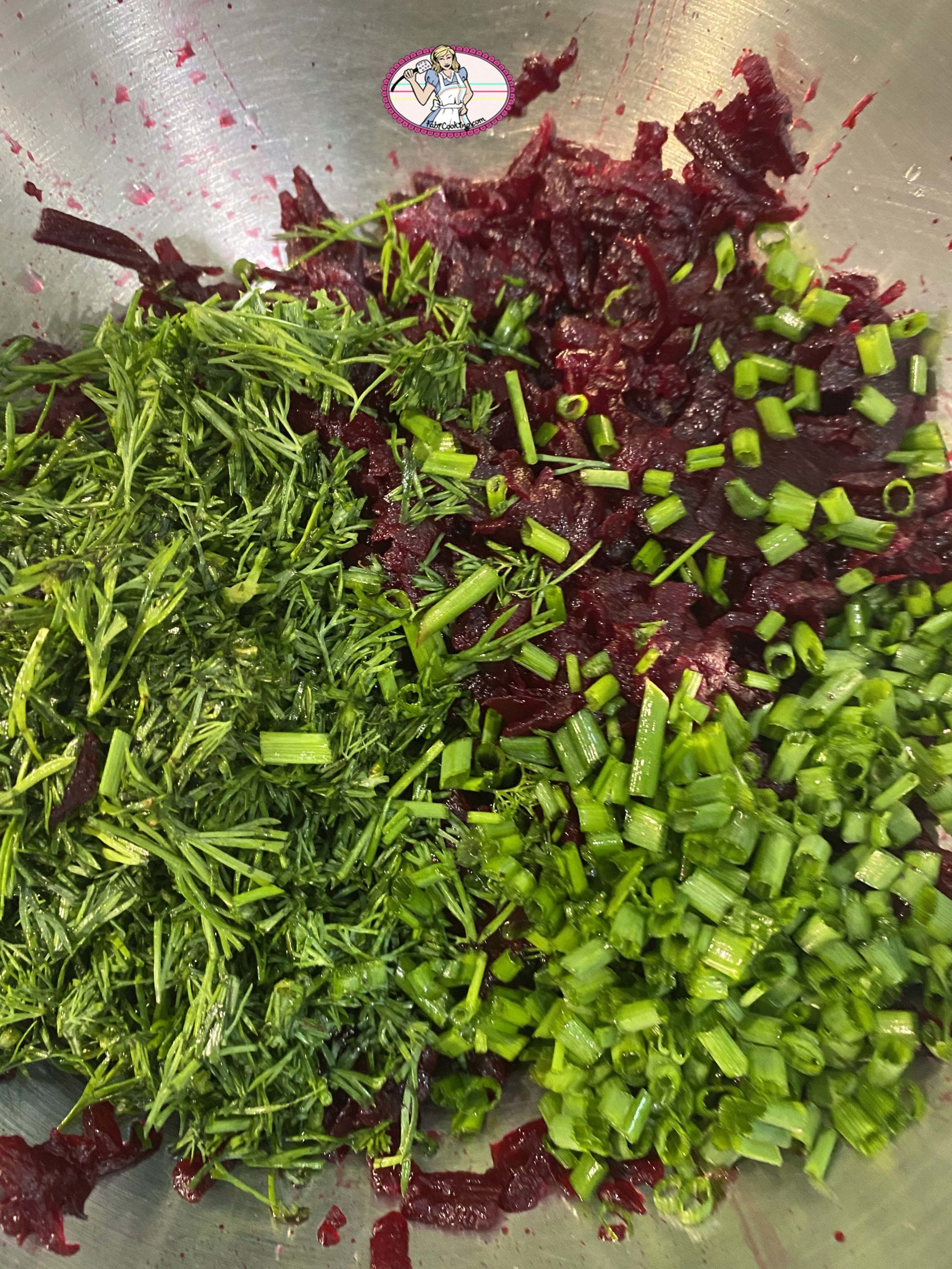 5. Ciseler la ciboulette et l’aneth. Râper la betterave.