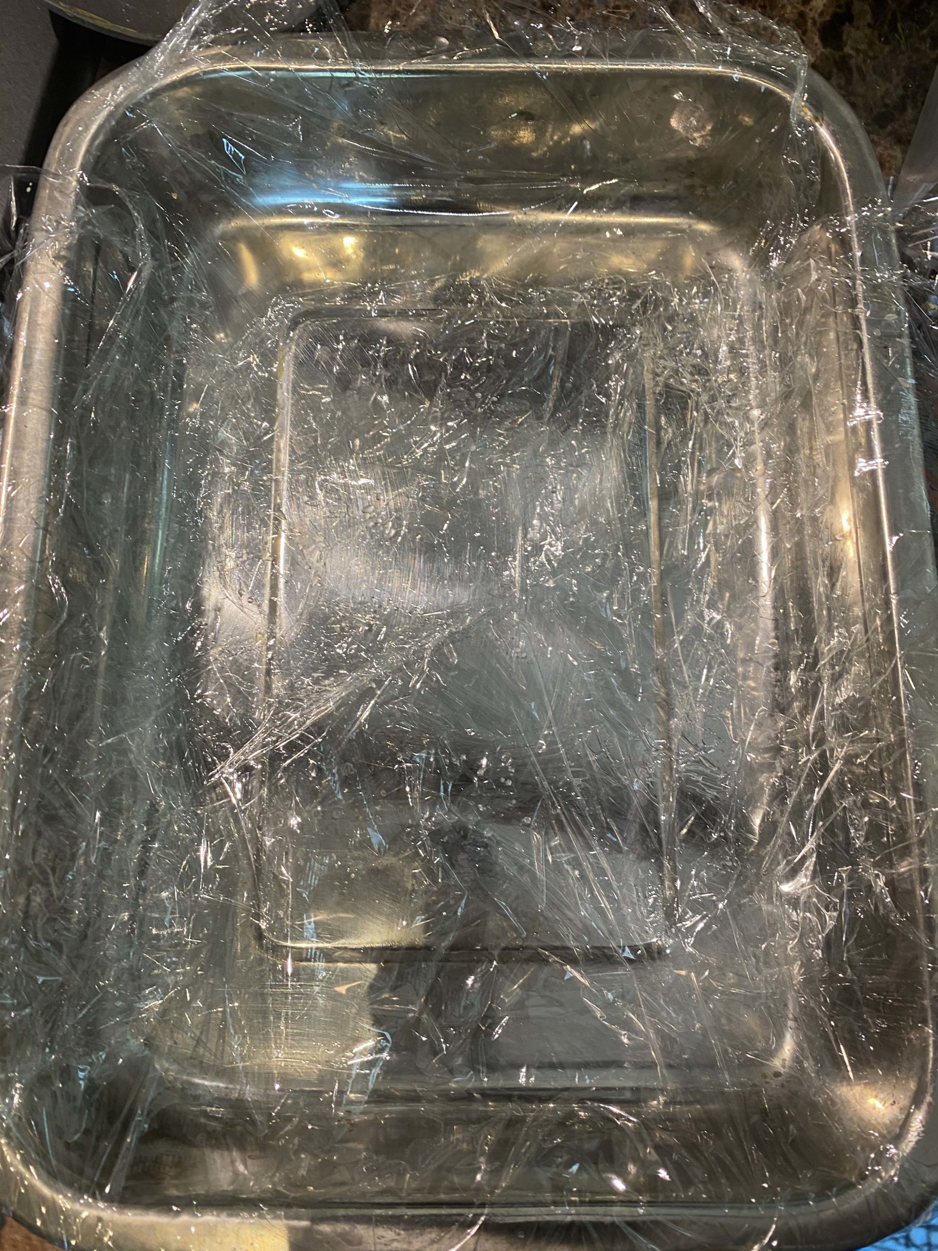 6. Tapisser un plat avec du film alimentaire sur toute la largeur et la longueur