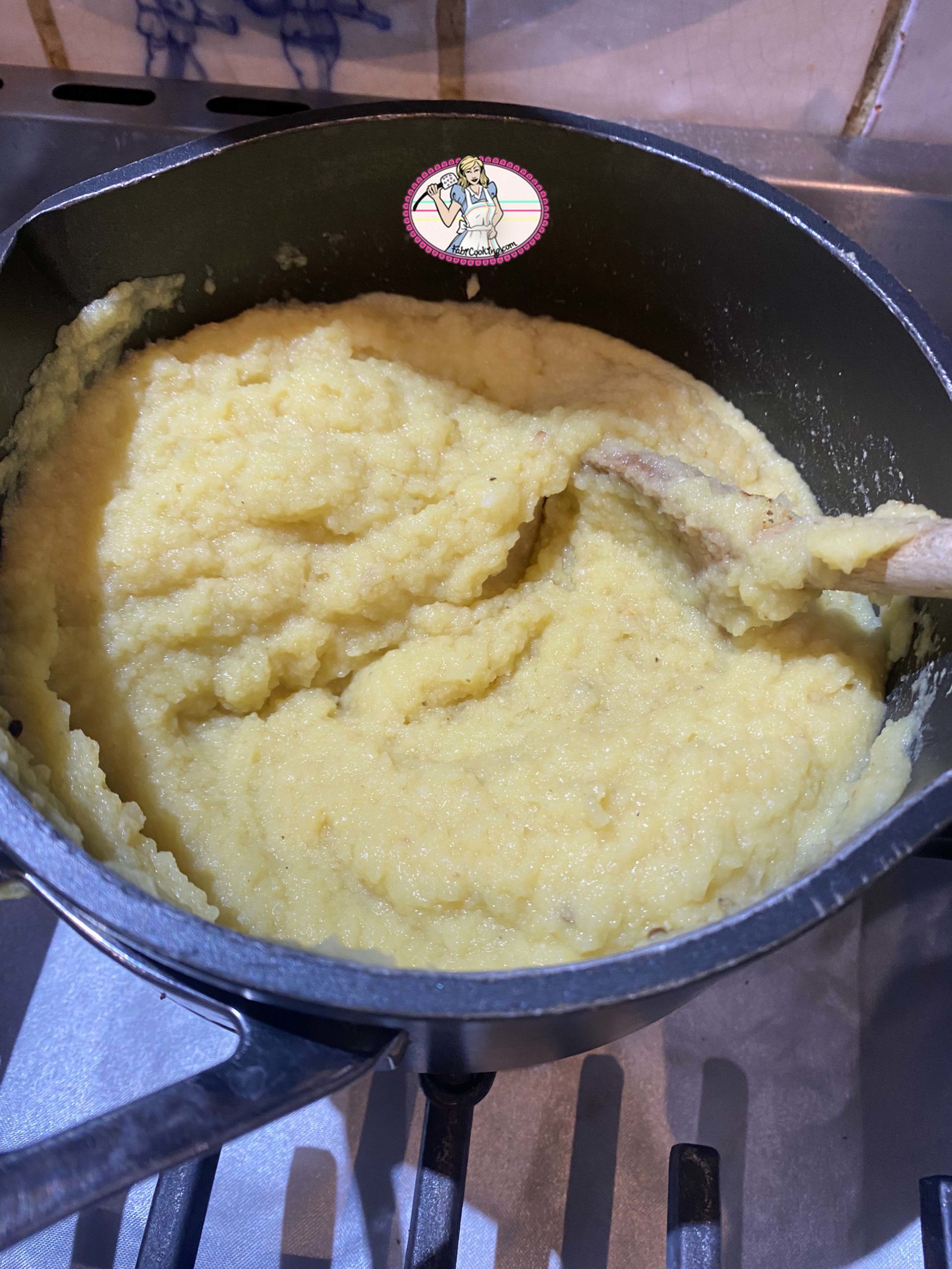 3. Débarrasser la purée dans une casserole et placer sur feu doux pour assécher la pâte. Diluer la fécule dans une cuiller à soupe d’eau de cuisson, ajouter sur la purée avec 2 cuillers à soupe de flocons de pomme de terre. Assaisoner en sel et poivre et verser le jus de citron ou l’acide citrique alimentaire.