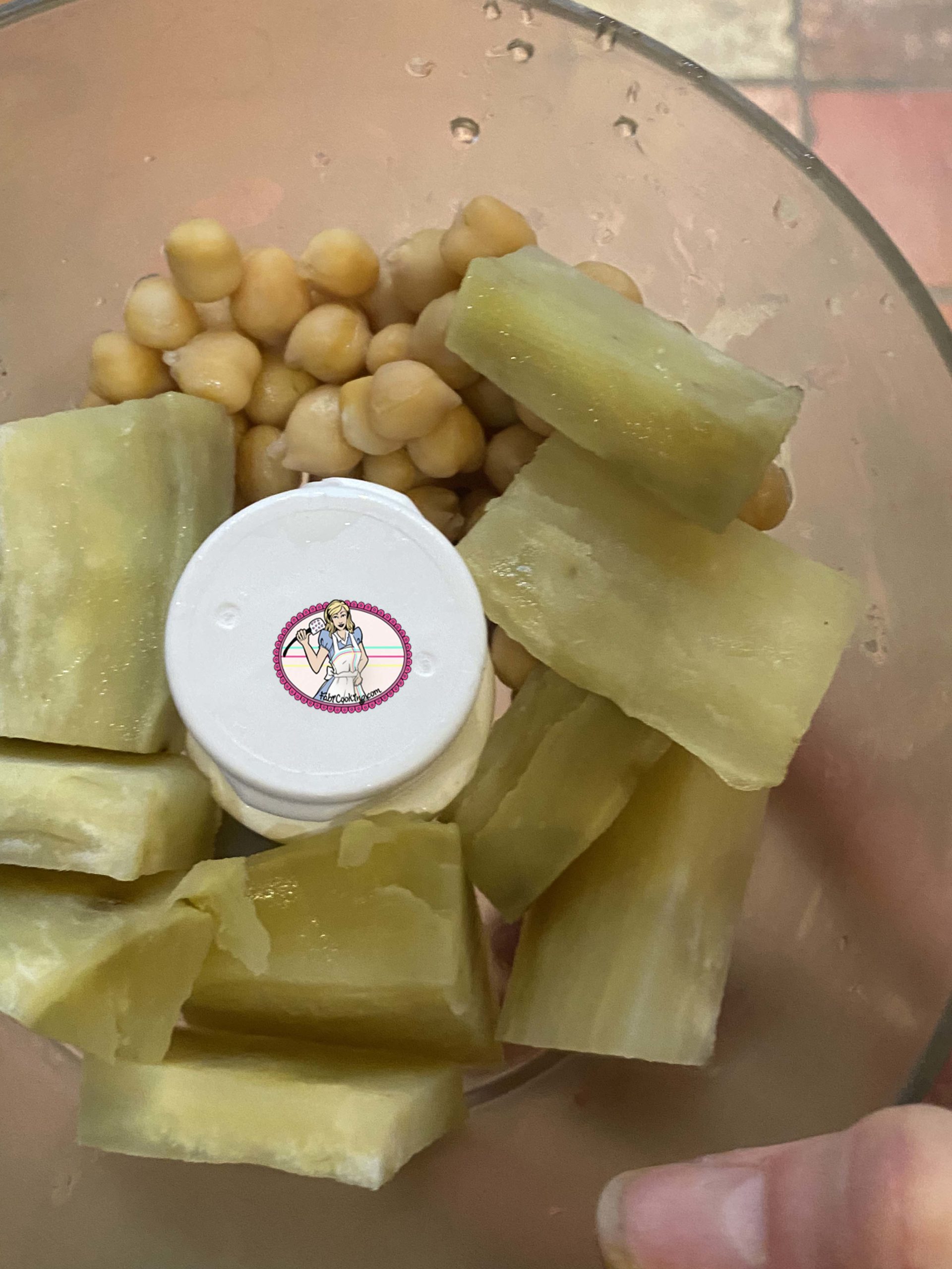 2. Dans un mixeur à lames, placer les légumes avec 70 g de pois chiches cuits. Ajouter la citronnelle en fines rondelles ou en purée si vous en avez. C’est d’une simplicité incroyable à faire et ça ne prend que quelques minutes: on enlève les feuilles sèches extérieures, on hache les tiges finement et on les met dans le bol du mélangeur. On ajoute de l’eau juste pour couvrir et on réduit en purée