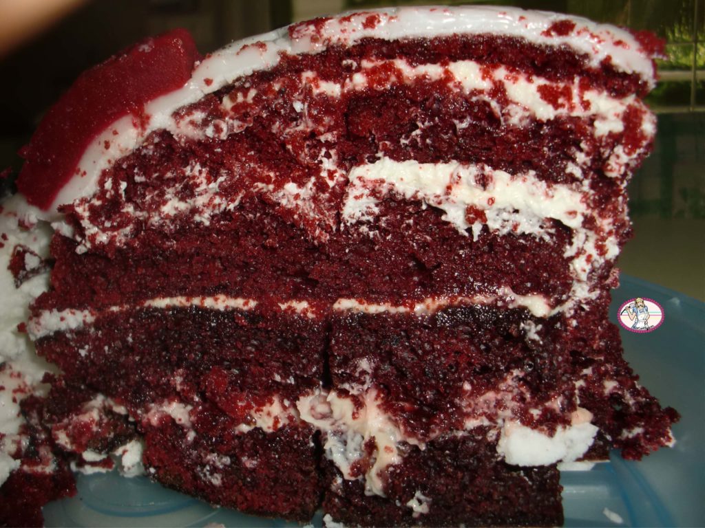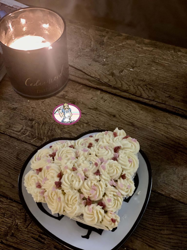 Il est léger, agréable en bouche et tient parfaitement la route même s’ il n’ est pas recouvert de pâte à sucre. De plus, à la découpe, sa couleur en étonne plus d’un ! J’accompagne en général le Red Velvet d’une crème à base de chocolat blanc et de fromage frais, le White chocolate icing.