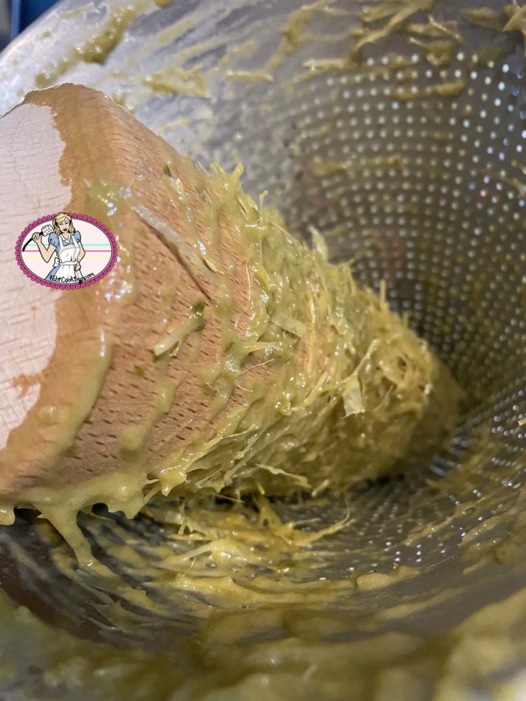 5. Enfin, filtrer le tout au tamis: c’est une étape incontournable, vous serez surpris par tous les fils que vous y trouverez! Attention, pas de mixeur plongeant.