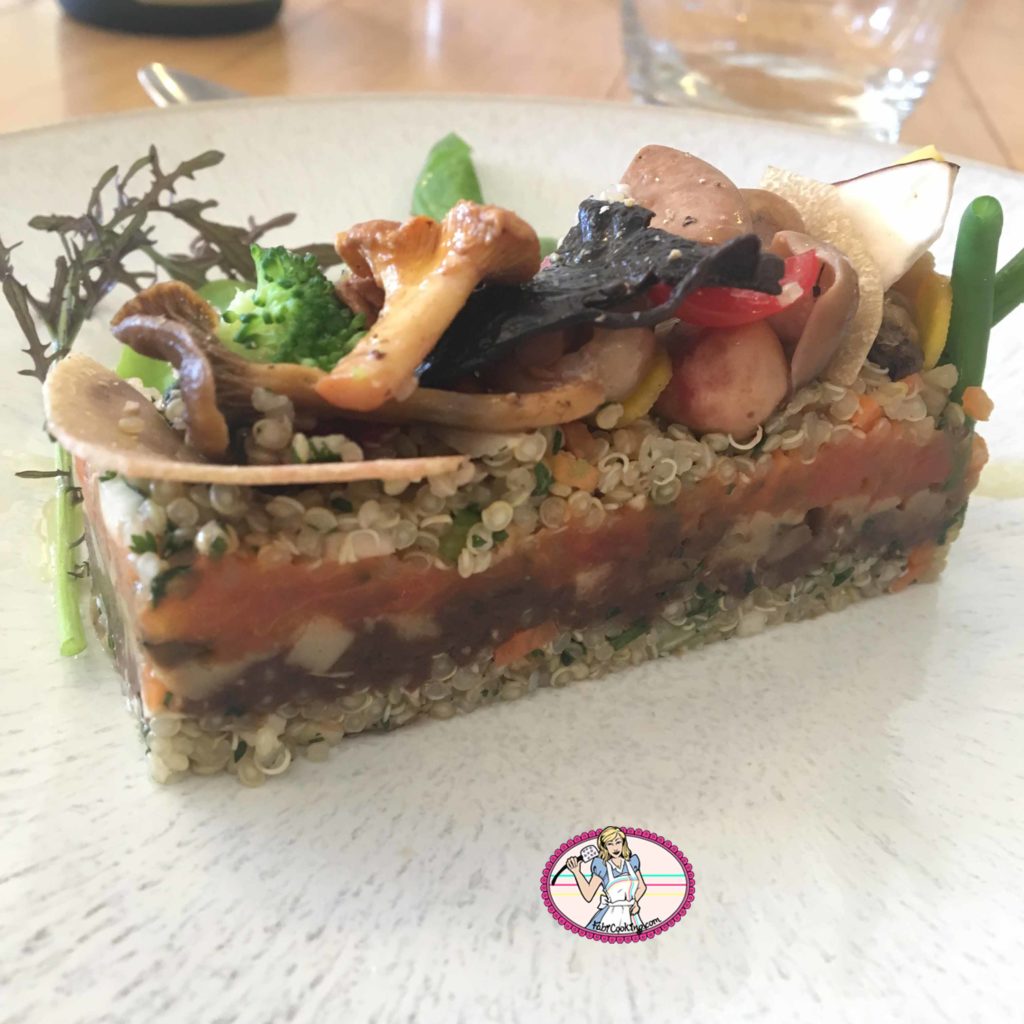 Voici un aperçu de ce que nous avons préparé durant le cours de cuisine: mille feuilles quinoa, lentilles et petits légumes.