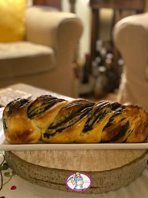 La Babka, c’est la brioche roulée et tressée d’Europe de l’est ( Pologne, cuisine juive ashkenaze ) qui cache au creux de ses plis, plein de bonnes choses, du chocolat, de la pâte à tartiner, de la crème de pavot ….et j’en passe!