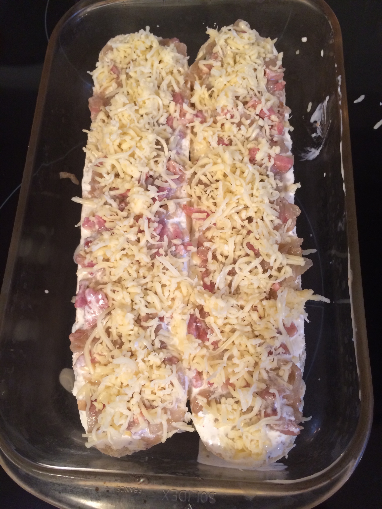 Ingredients ( préparez et congelez la préparation avec oignons et lardons en petits sachets de 100 gr pour 2 demies baguettes )