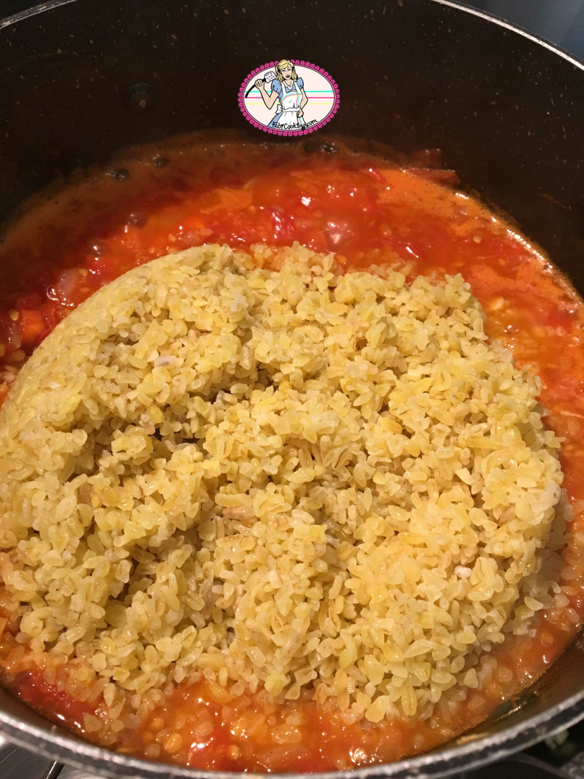 - Cuire le boulgour: ajouter le bourghol dans la cocotte et bien mélanger pour l’ enrober. Couvrir et laisser cuire à feu doux 15 à 20 mn jusqu’à ce que le boulgour ait absorbé le liquide et soit tendre.