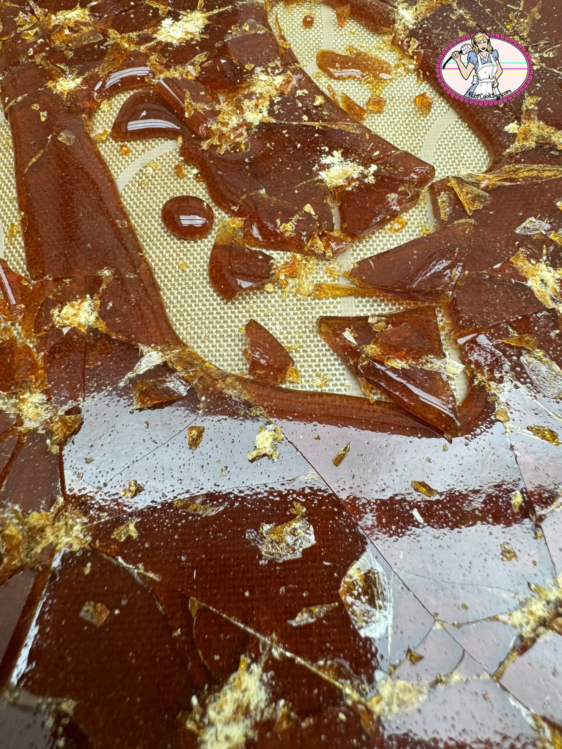 - Étalez le caramel sur une plaque recouverte d’un tapis de silicone et laisser refroidir.