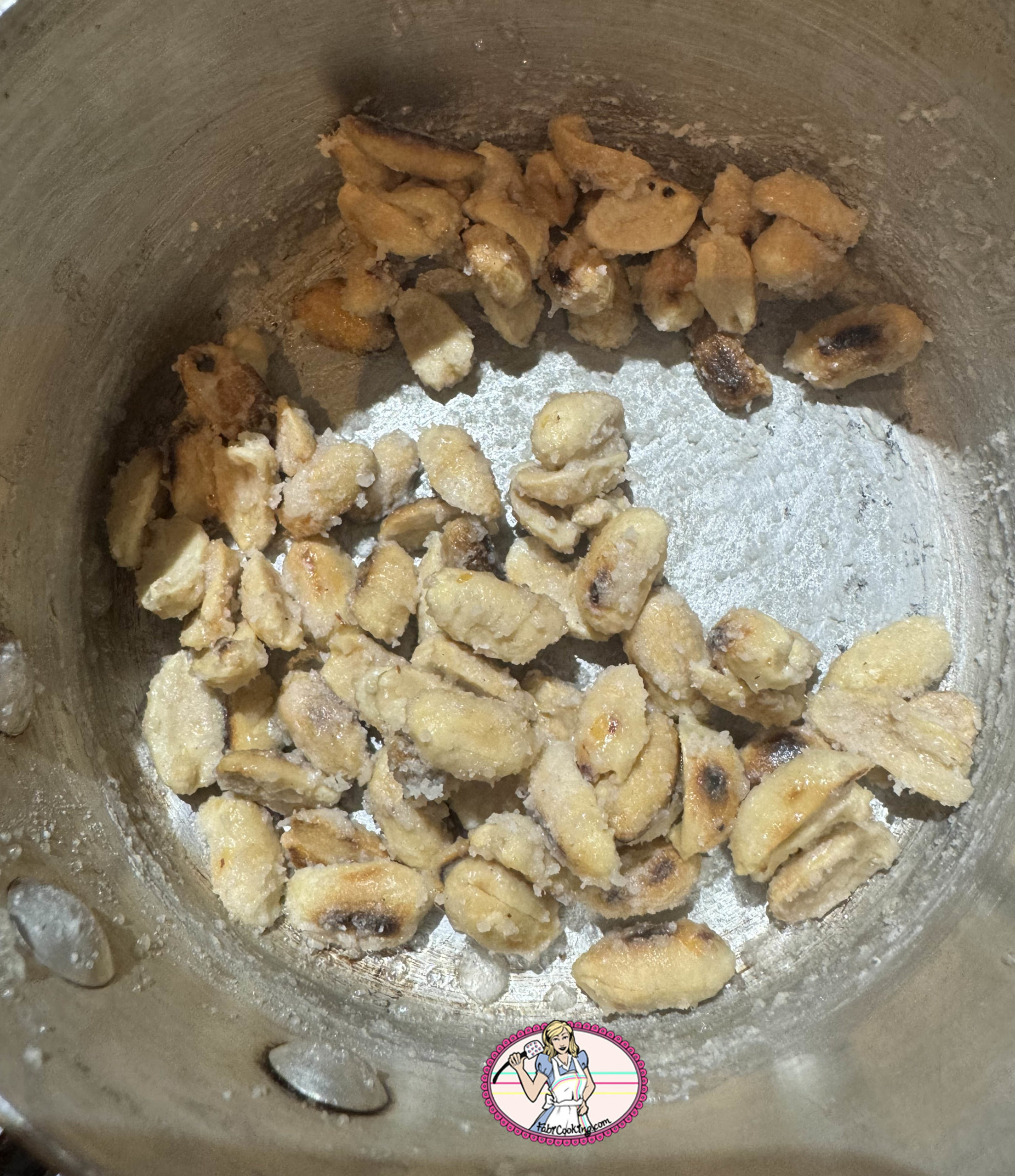 - Étaler sur du papier sulfurisé et laisser refroidir. Concasser les cacahuètes grossièrement. Ici il manque une photo de l’étape suivante.