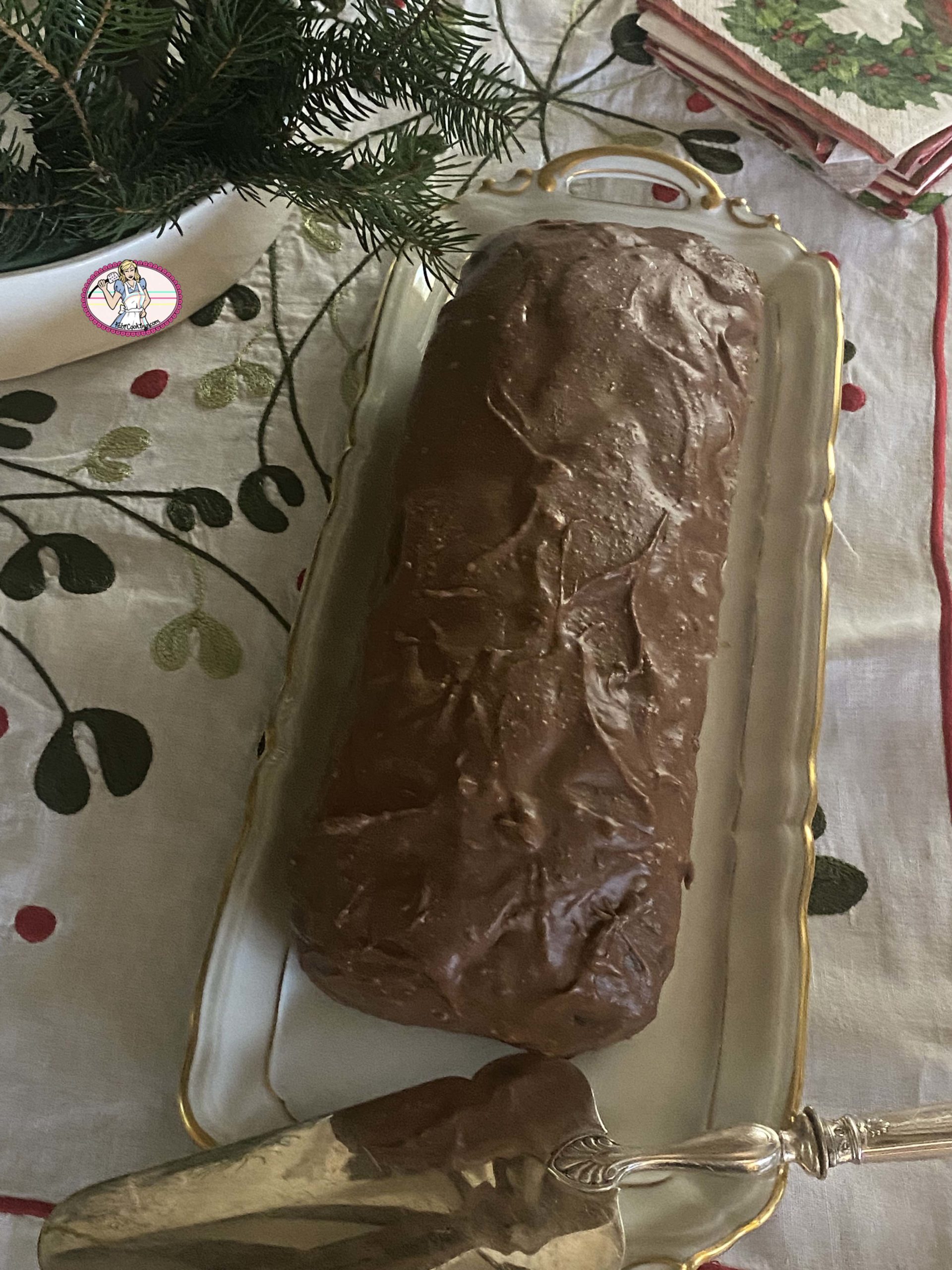 4. La température du glaçage doit être de 35°maximum: si le cake est bien frais, l’opération est rendue plus simple. Si vous êtes pressée, un petit passage au réfrigérateur pour figer le chocolat serait nécéssaire.