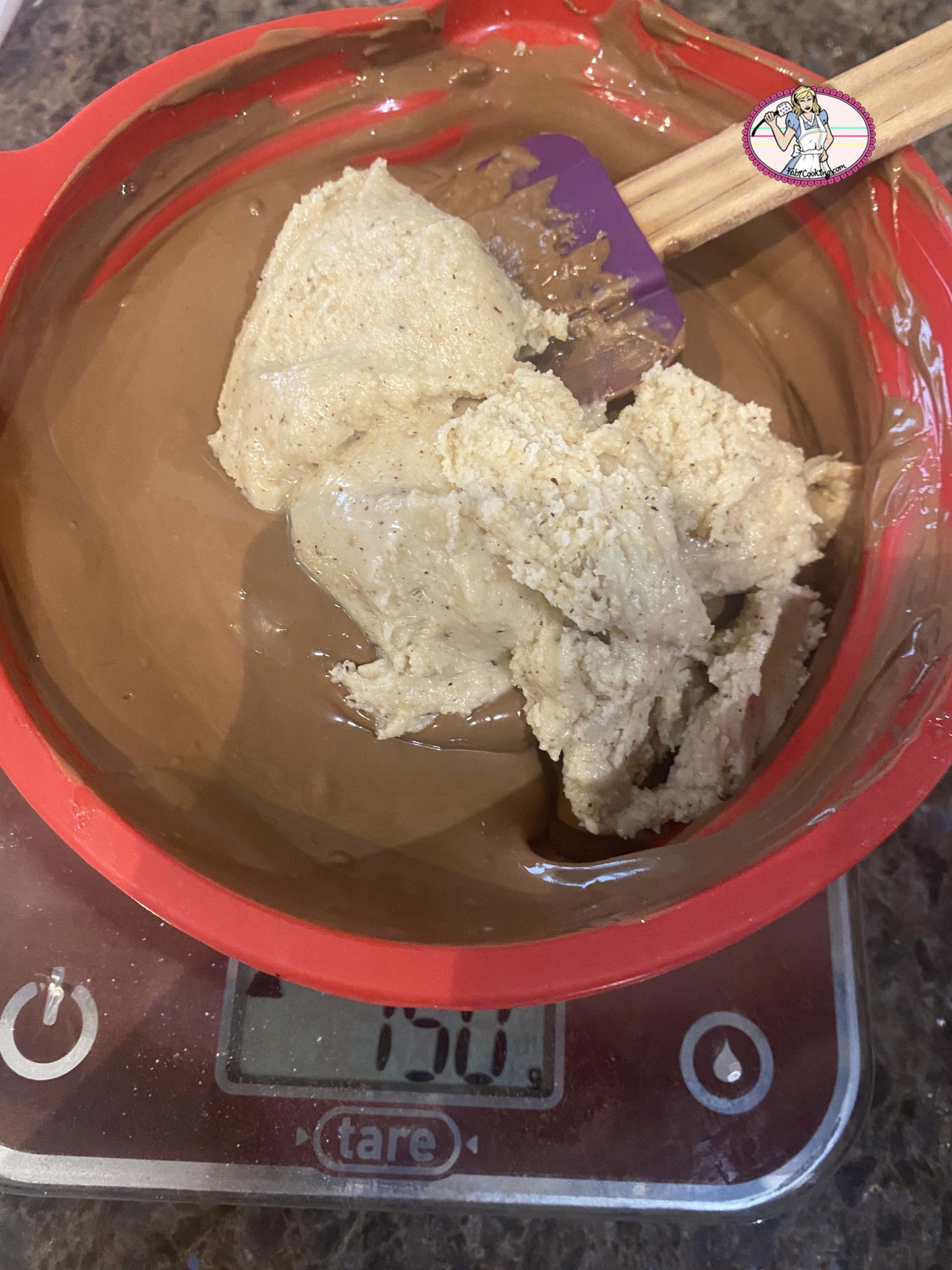 10. A la maryse, il ne vous reste plus qu’à incorporer le gianduja et les noisettes concassées grossièrement