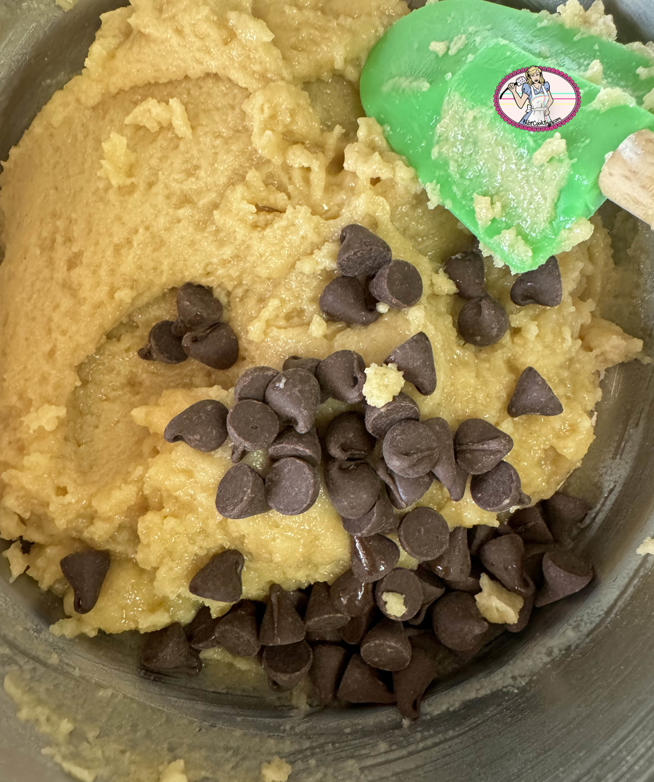 5. Et pour terminer, ajouter les pépites de chocolat. Réserver à température ambiante si vous n’allez pas utiliser le glaçage pâte à cookie tout de suite. Si vous le placez au réfrigérateur, réservez le à température pour qu’il soit plus facile à étaler.