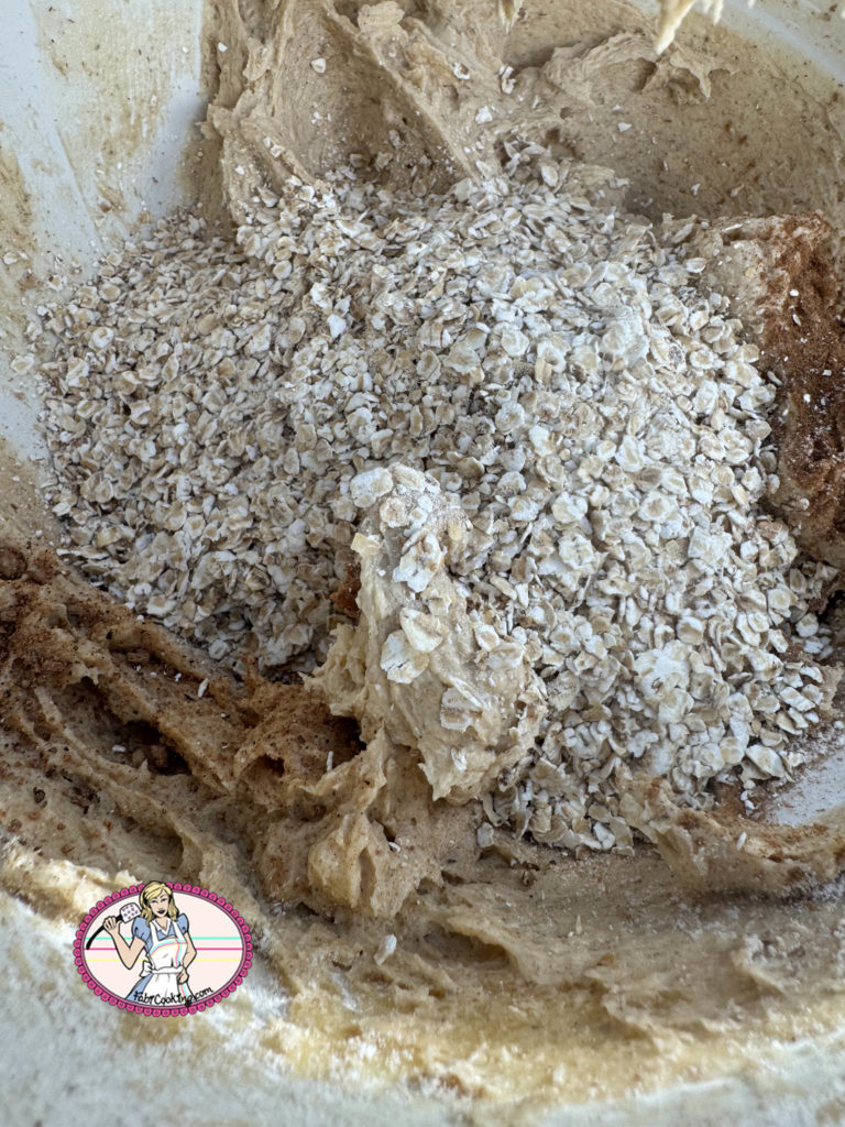 - Enfin, rajouter en dernier, les flocons d’avoine, les raisins ou cranberries secs et les cacahuètes non salées grossièrement hachées.