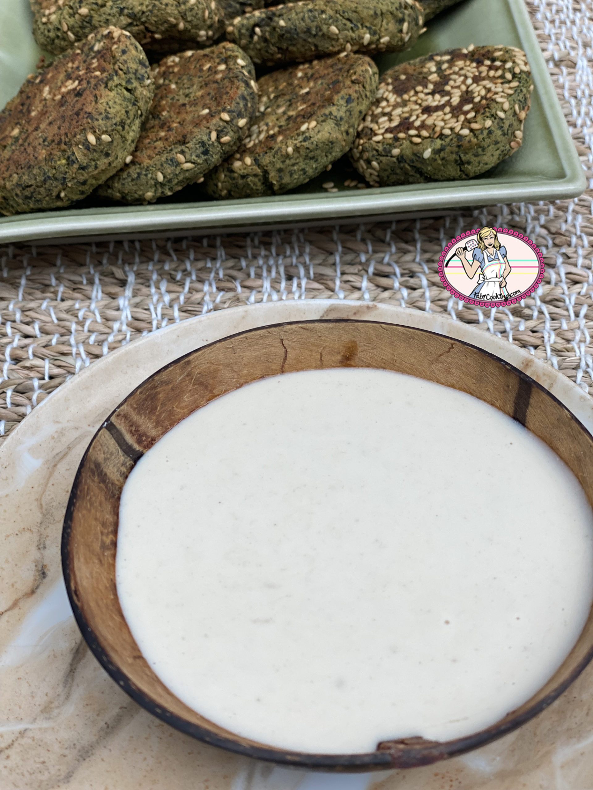 6. Déguster avec une sauce à la tahiné préparée avec :