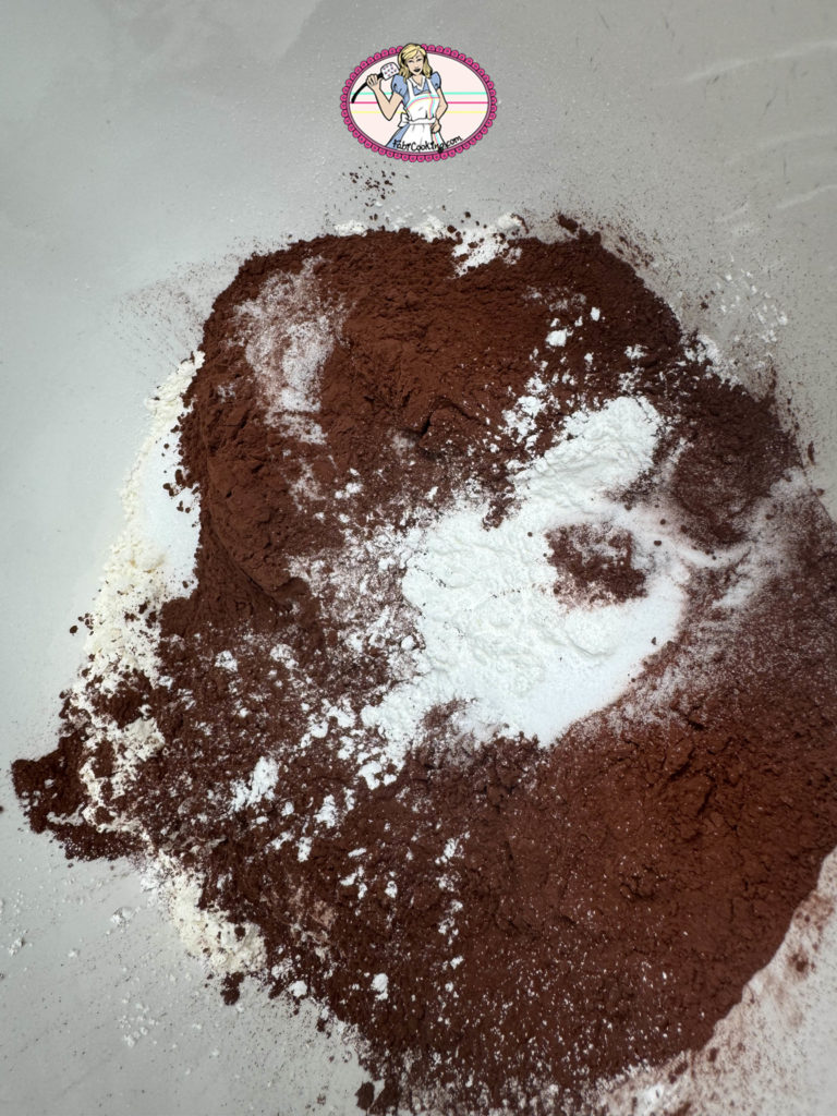 - Dans le bol du robot, tamiser la farine, la poudre de cacao, la levure chimique, le bicarbonate de soude et le sel puis mélanger à petite vitesse.