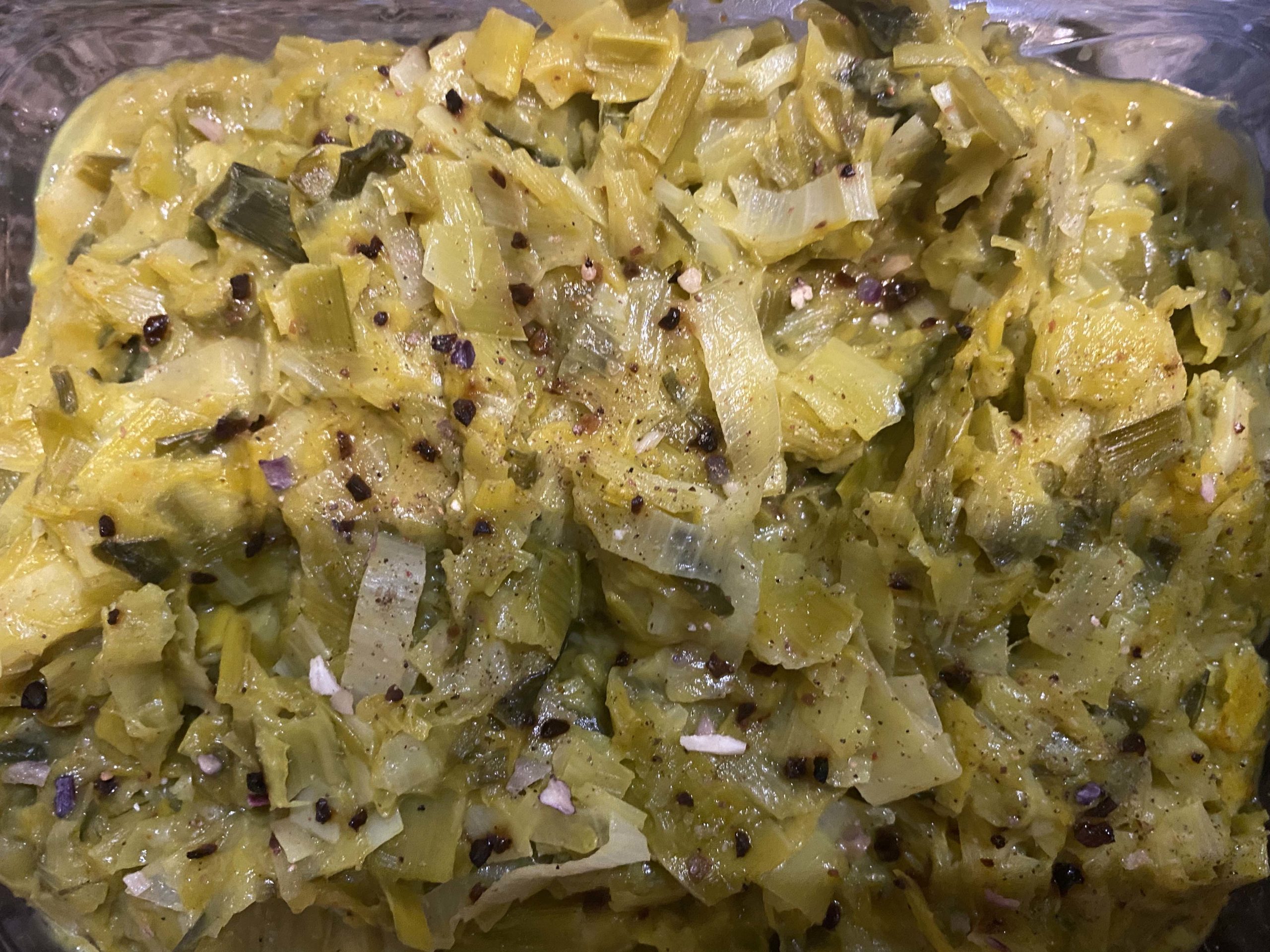 Souvent associés à beaucoup de fromage et éventuellement au jambon, j’ai choisi de les mélanger, pour changer, au poireau avec une pointe de curry que vous pourrez tout simplement ignorer si vous préférez cuisiner » français ».