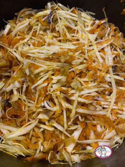 1. Laver le chou, la coriandre, les oignons verts, les pousses de soja et les champignons. Si vous avez des shitaké secs, il faut les faire tremper la veille ou quelques heures à l’avance et surtout les cuire à la poêle pendant 30 minutes. ( ils sont assez caoutchouteux). S’ils sont frais, les rajouter avec les autres légumes.
