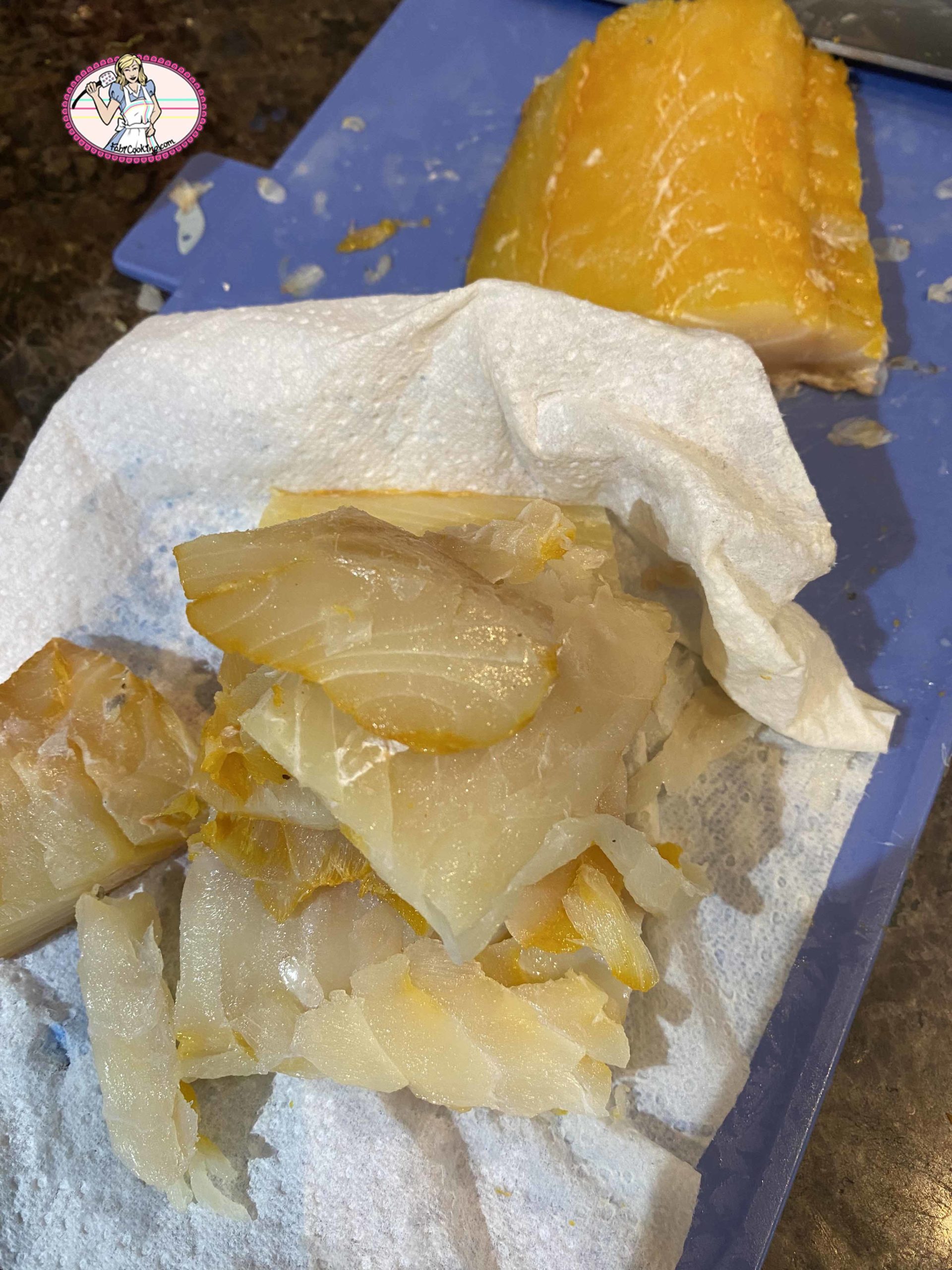 4. Ôter le haddock du lait et sécher sur un sopalin. Détailler en gros cubes.