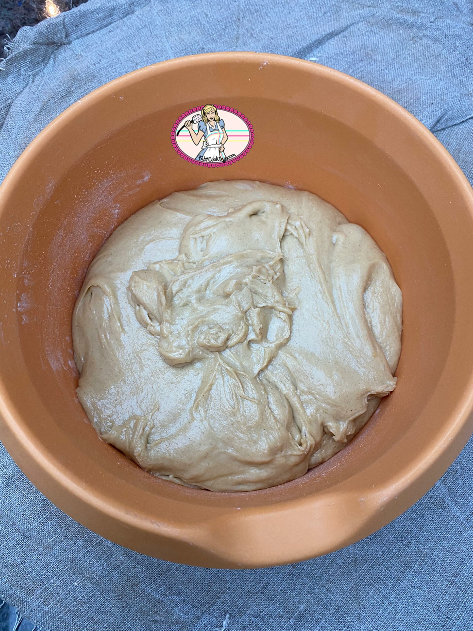 - Débarrasser dans un cul de poule assez grand et fariné puis laisser lever pendant 1h 30 dans un endroit bien protégé des courants d’air après l’avoir recouvert d’un linge ou d’un film alimentaire.
