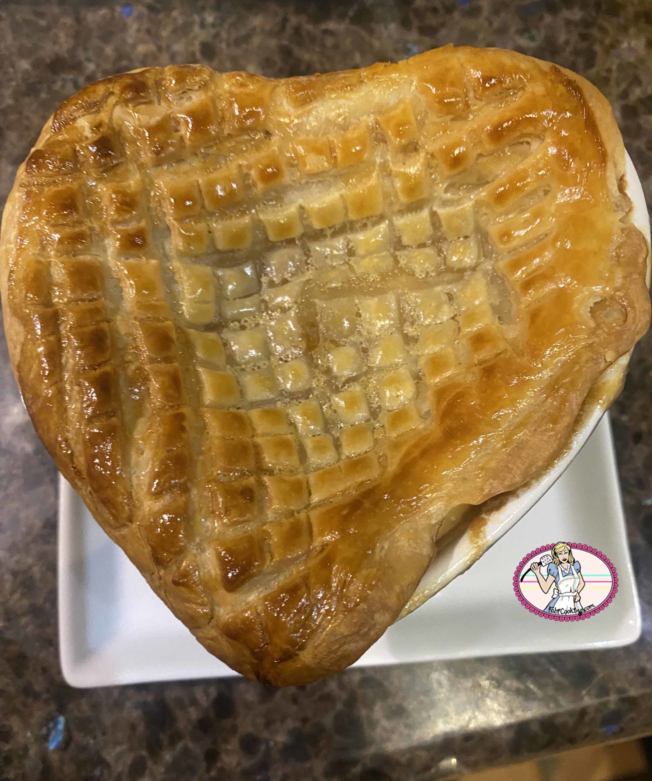 9. Pendant ce temps là, beurrer l’intérieur de vos petits caquelons et découper les couvercles dans la pâte feuilletée en prenant soin d’agrandir le diamètre de 2 bons centimètres pour bien recouvrir les bords. J’ai fait mieux à la deuxième découpe, là, ce n’est pas assez généreux!
