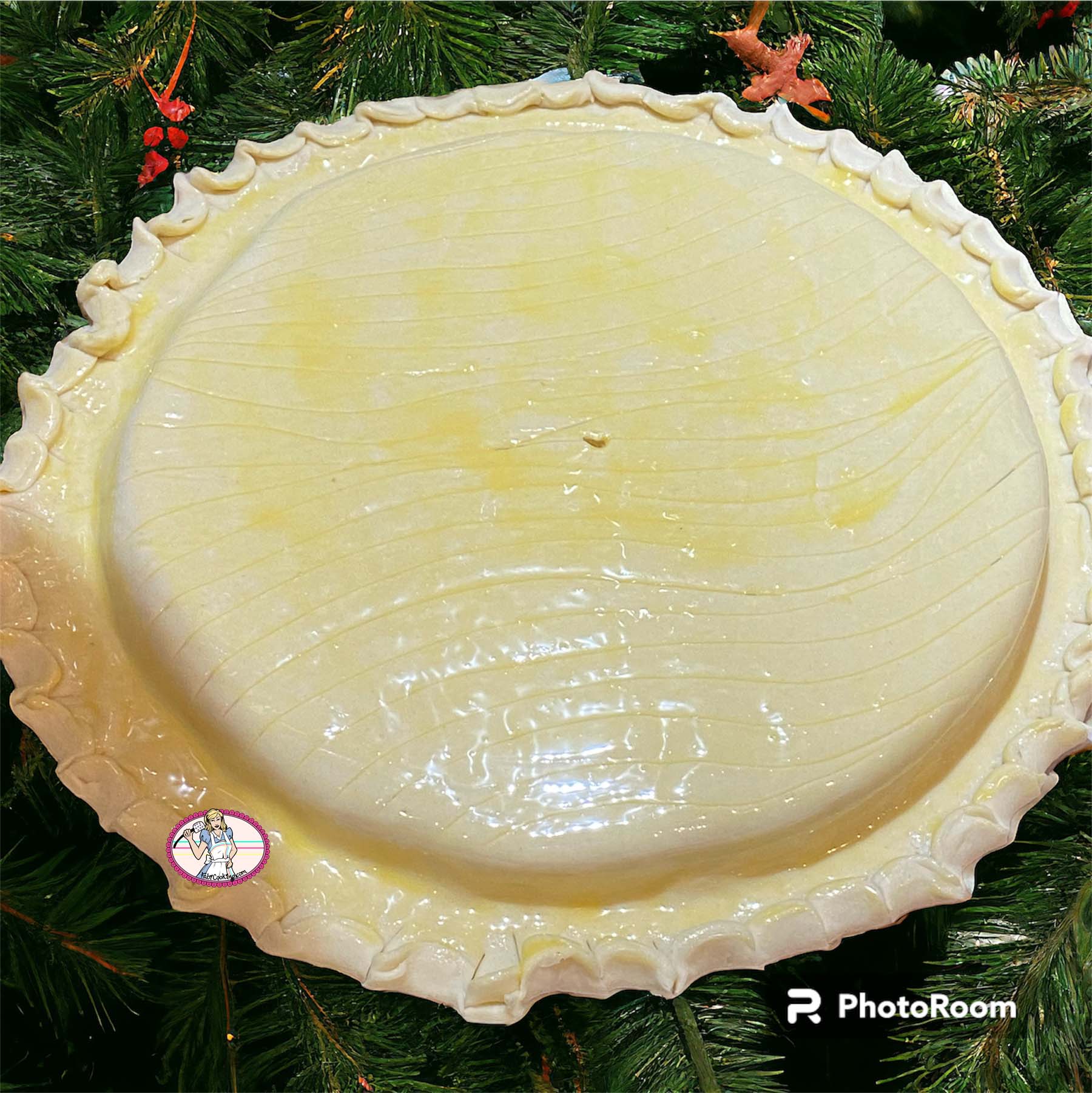 - Dorer le dessus de la galette en évitant les bords puis dessiner sur la surface le dessin de votre choix avec l’envers de la lame d’un petit couteau.