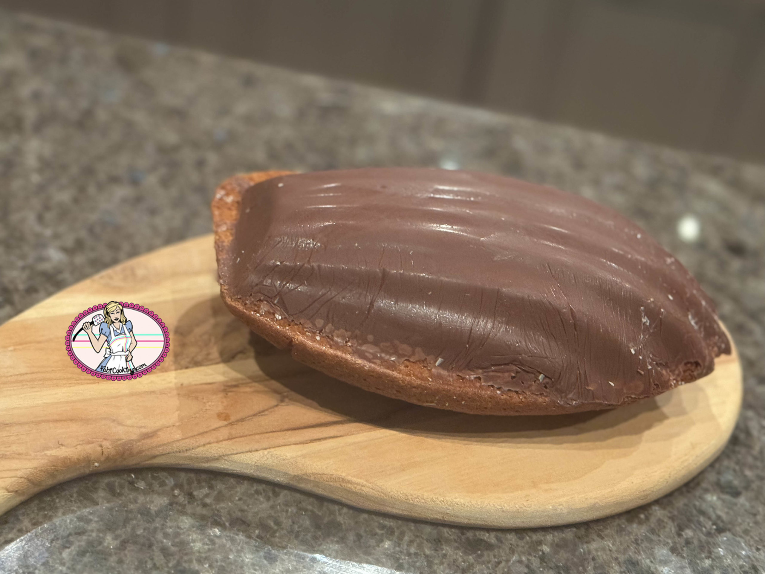 12. Pour plus de gourmandise, vous pouvez recouvrir la madeleine au caramel d’une jolie coque de chocolat au lait ou de chocolat caramélia de Valrhona . Si vous avez le moule de la madeleine du partage et pour vous garantir un démoulage du chocolat avec un sans faute, suivez ma méthode: