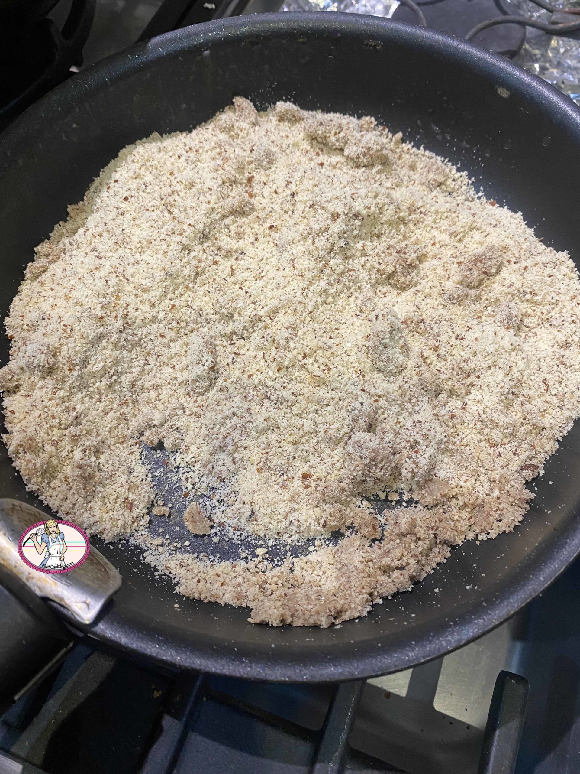 - Torréfier la poudre de noisette au four à 170° pendant 10 à 15 mn ou dans une poêle, à feu doux, sans ajout de matières grasses et en remuant la poudre pour surveiller qu’elle ne brûle pas.