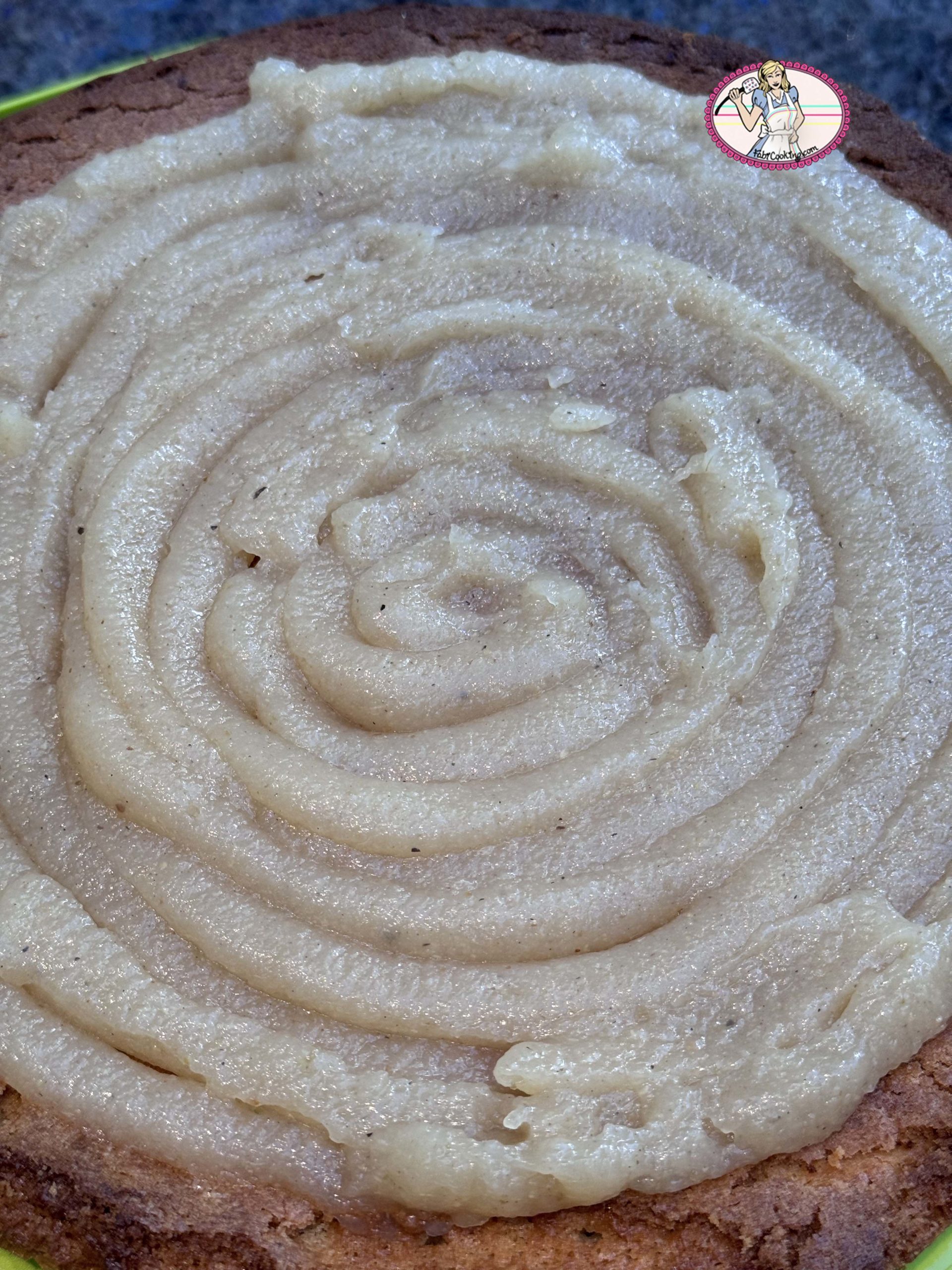 - Sortir la compote du réfrigérateur. Mélanger à la maryse et placer la compote dans une poche pâtissière ou l’étaler sur le sablé breton en réservant un doigt tout autour sans compote.