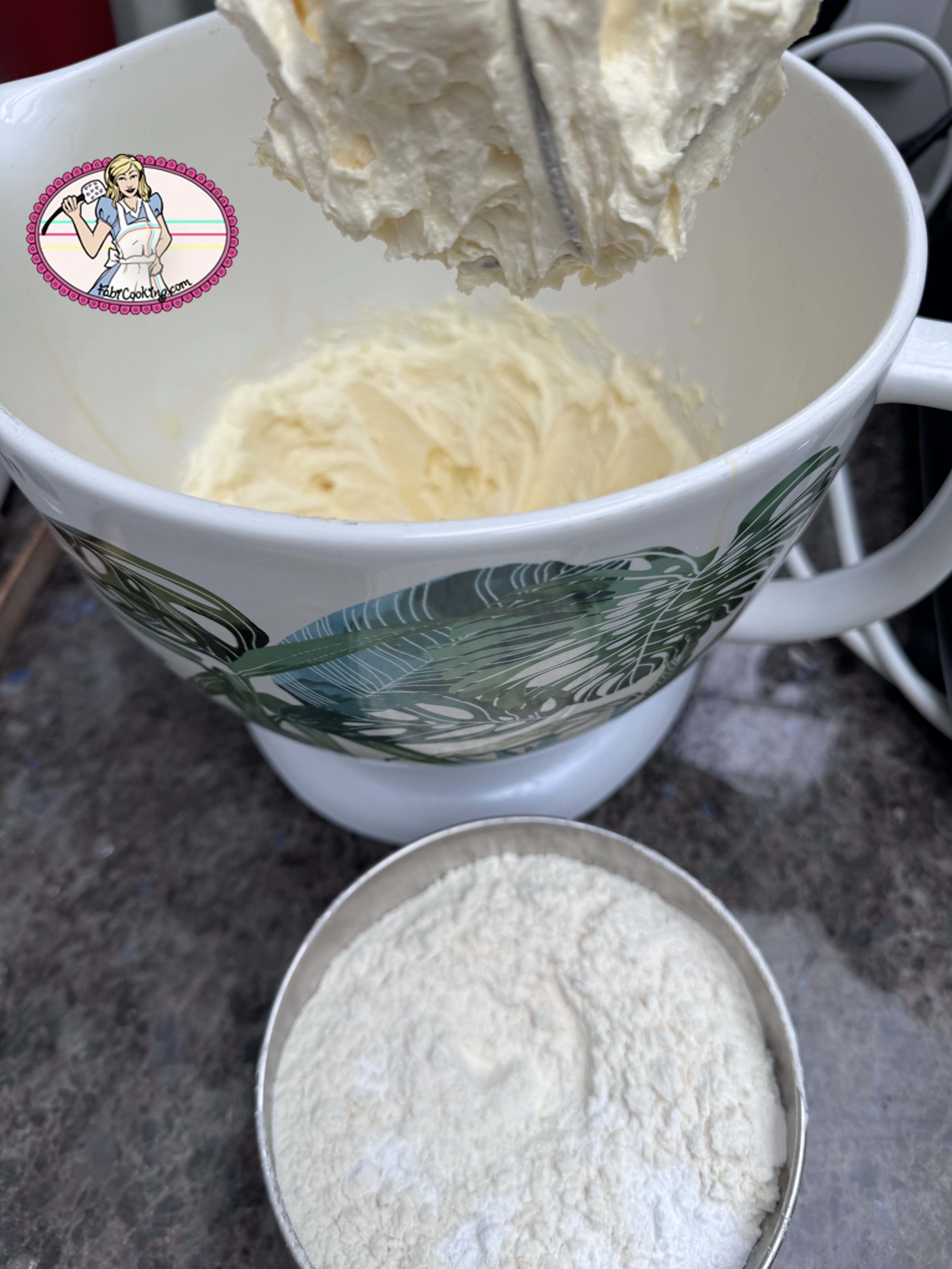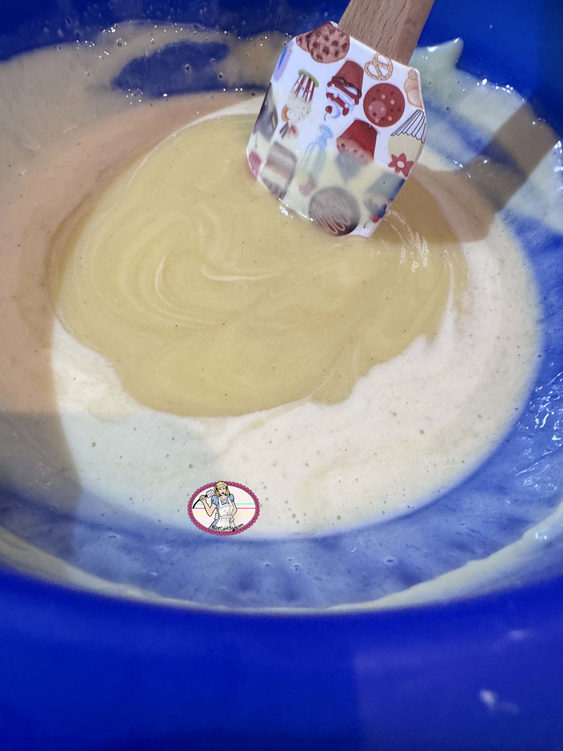 - Ajouter la farine tamisée, la pointe de fleur de sel et le sachet de levure chimique. Mélanger jusqu’à ce que la pâte soit homogène et lisse.
