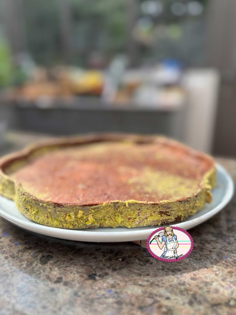 - Astuce Fabicooking: pour un effet plus joli et avant de garnir de kadaïef le fond de tarte, recouvrir les bords extérieurs du fond de tarte de crème de pistache étalée finement à l’aide d’un pinceau. Recouvrir de poudre de pistache.
