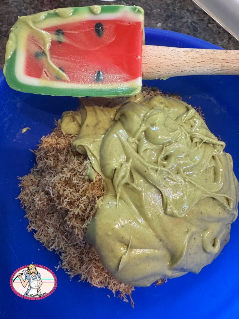 - Mélanger délicatement les kadaief avec la crème de pistache, puis garnir le fond de tarte précuit.