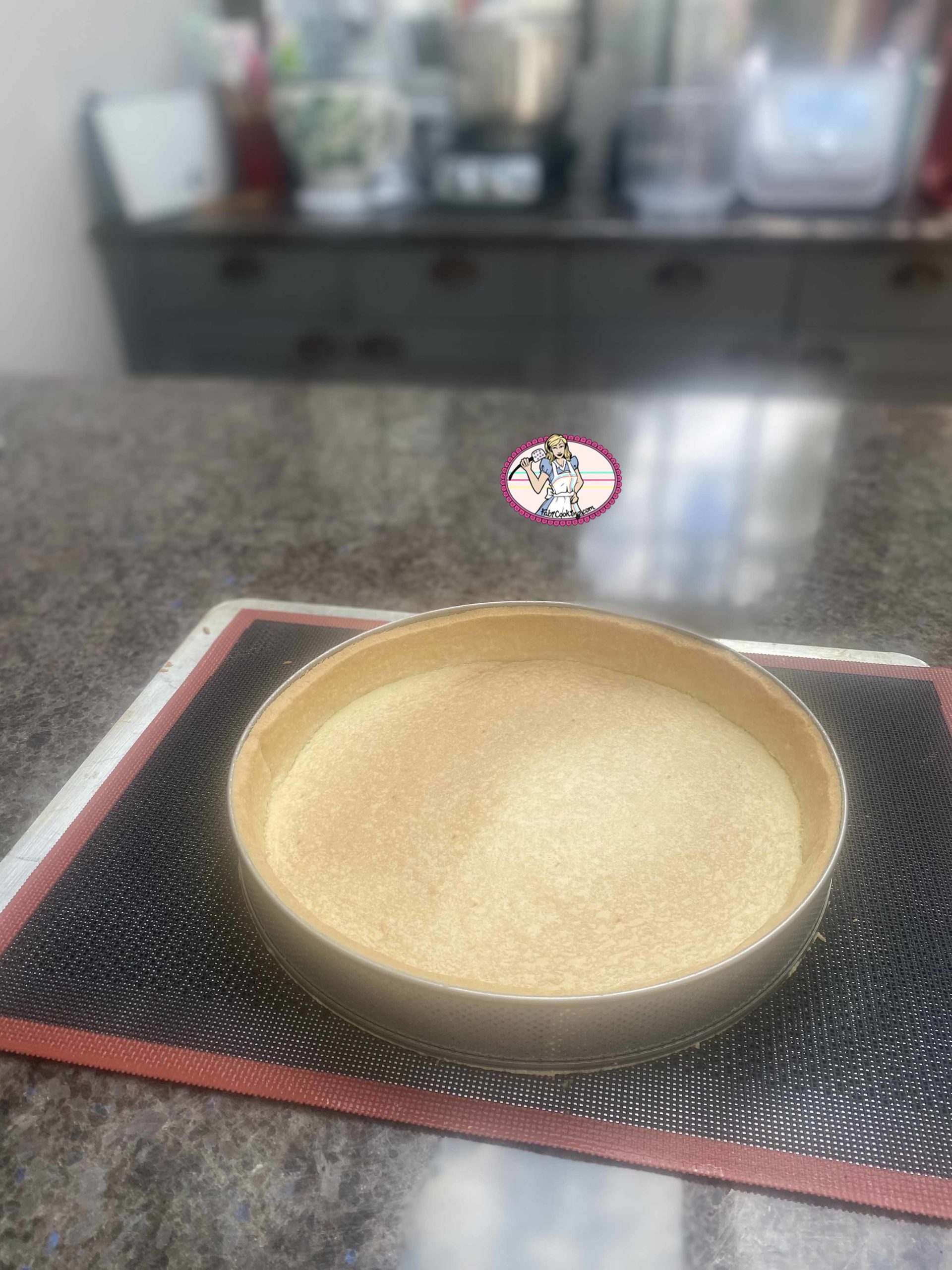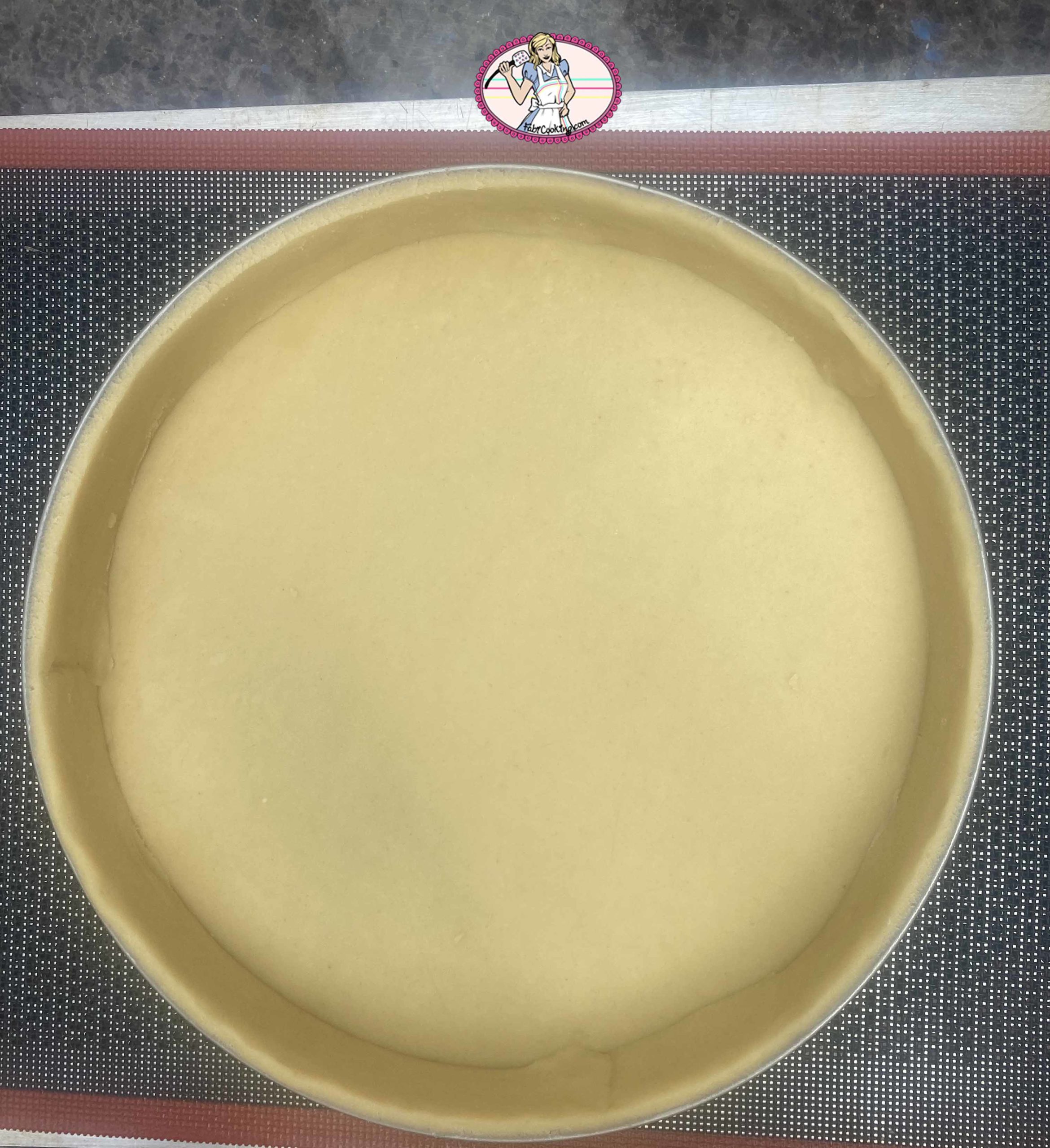 7. Le lendemain, abaisser la pâte sur une épaisseur de 3 mm environ et foncer votre cercle à pâtisserie ou votre moule. J’ai personnellement choisi un moule à bord un peu haut pour plus de gourmandise et de 26 cm