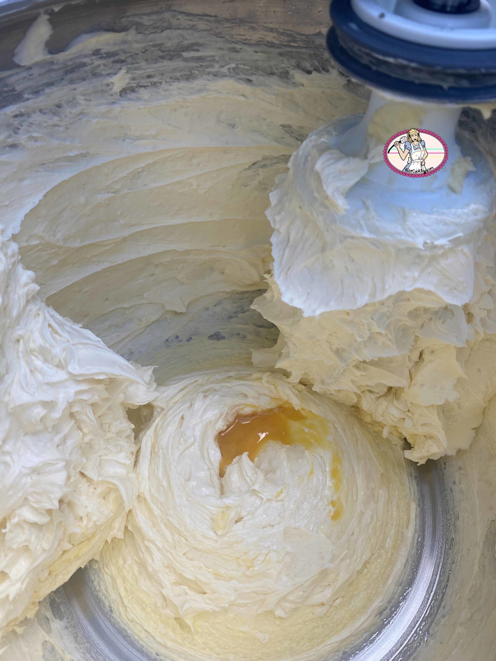 - Ajouter le beurre laissé à température ambiante et pommader le tout soigneusement: l’ appareil doit être lisse.