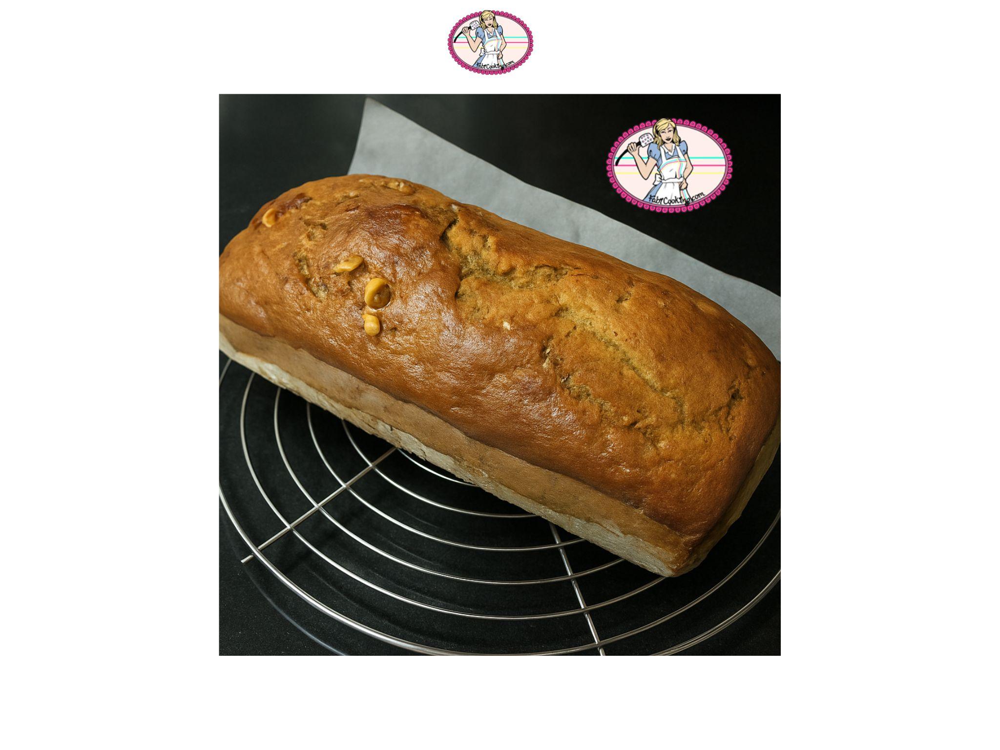 9. Cuisson entre 50 et 60 minutes. Au bout de 45 minutes, verifier la cuisson avec la pointe d’un couteau: si la surface du Banana bread est encore un peu flageolante, prolonger la cuisson. Au bout de 60 mn , la pointe du couteau devrait ressortir très légèrement humide.