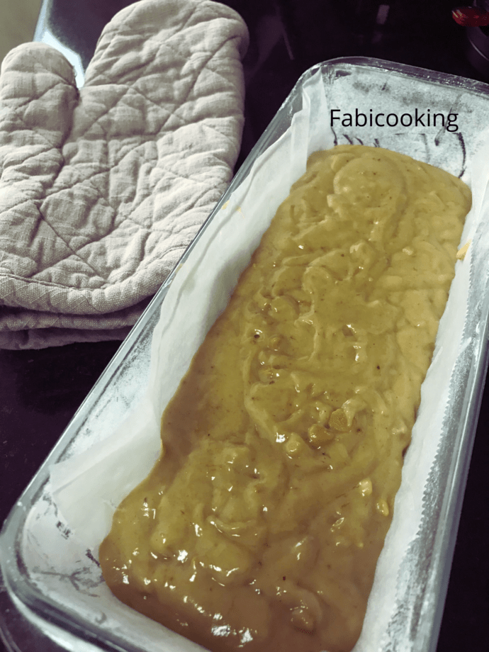 8. Verser l’appareil à Banana Bread, lisser la surface et enfourner à four préchauffé à 180*
