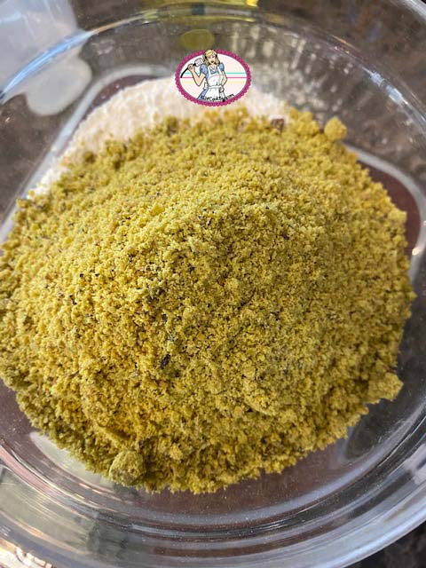 - Dans un cul de poule, tamiser la farine, la levure, le bicarbonate de soude et le sel. Rajouter la poudre de pistache et réserver.