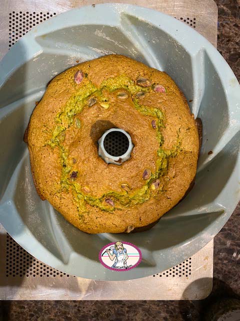 8. Débarrasser dans le moule et parsemer de quelques pistaches en surface avant d’enfourner pour 40 minutes de cuisson environ.