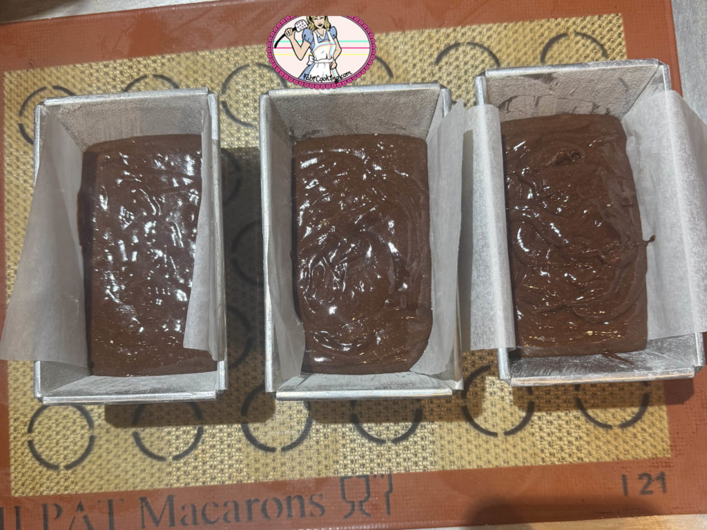 - Préchauffer le four à 160°. Beurrer, fariner et chemiser 3 petits moules de 15 cm de long, deux moyens ou un seul plus grand