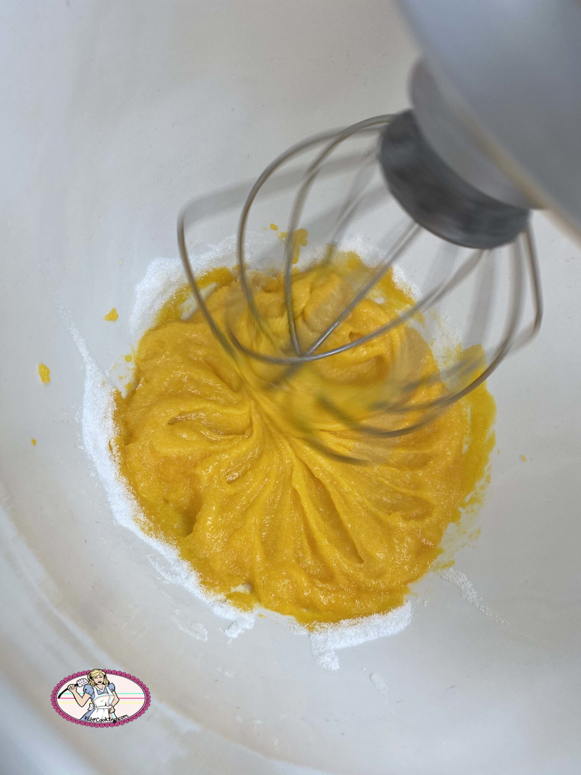 3. Dans un cul-de- poule, blanchir au fouet les oeufs avec le reste de sucre, la pincée de sel puis incorporer la fécule. Si vous avez de la pectine X58, réservez en une cuiller à café pour la mélanger avec au moment de la cuisson de la crème.